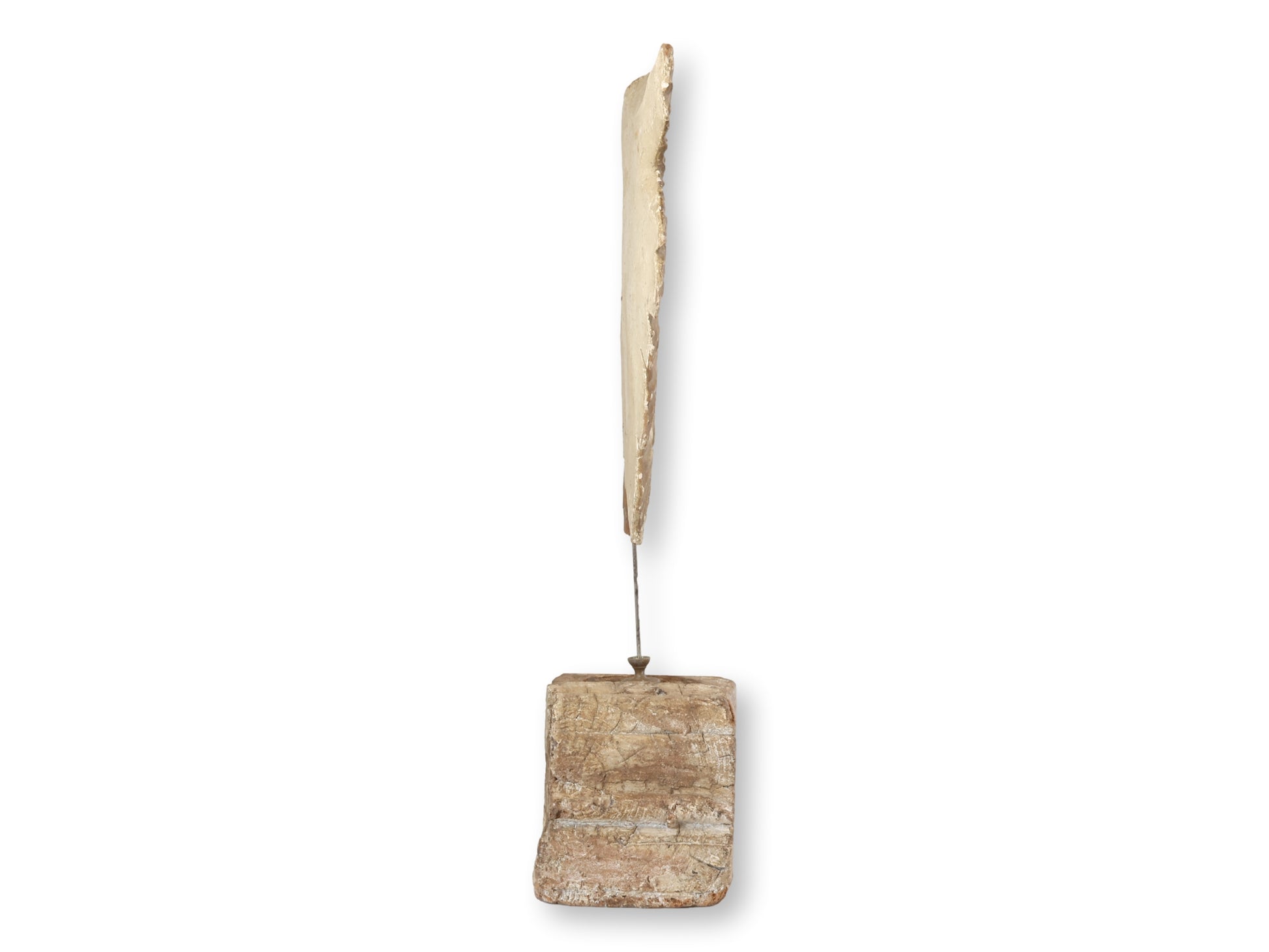 A rare survivor of early European craftsmanship, this 17th-century angel wing fragment captures divine artistry in its most intimate form. Hand-carved from wood with traces of original gilt, the wing rests on an antique stand (added later for display). Its centuries-old wear speaks to a life once spent adorning a sacred space—a relic of beauty, grace, and enduring spirit.