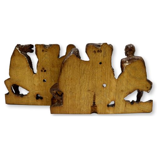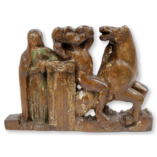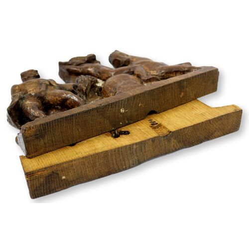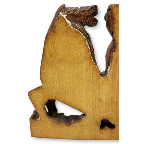 From a private collection in Barcelona, enhance your space with our exquisite 18th century hand-carved Santos Figural Scenes, a testament to Spanish Colonial artistry. Crafted from carved wood and adorned with a delicate layer of historic gesso, these pieces showcase captivating scenes that resonate with history. Wall-mount or stand-alone options provide versatile display, while traces of original pigments evoke a sense of antiquity.