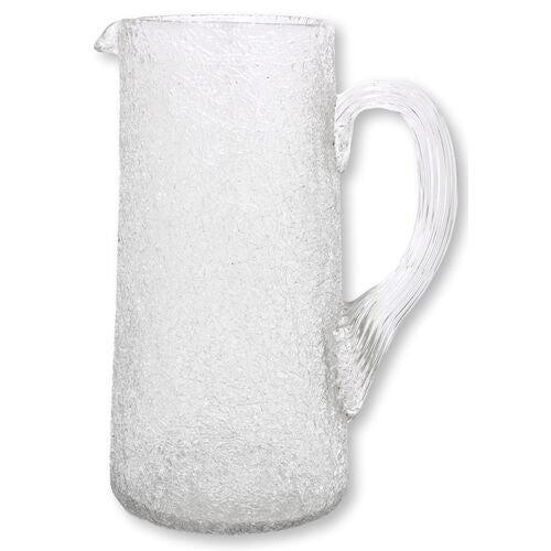 Transport yourself to the elegance of the 1920s with our exquisite English Crackle Glass Beverage Set. Inspired by the Art Deco era, this set includes a pitcher and matching glasses, all adorned with mesmerizing crackle patterns that capture the light in a dazzling dance. Crafted with precision and nostalgia, this set is perfect for adding a touch of vintage sophistication to your gatherings. Sip your favorite beverages in style and relish the charm of a bygone era with every toast. Unsigned.
