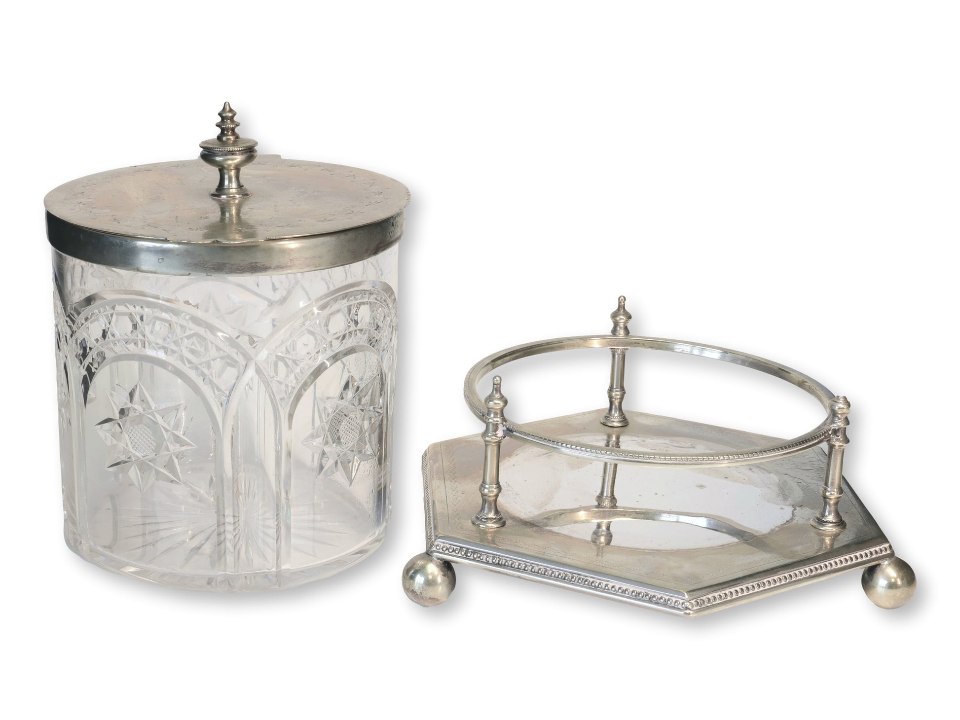 Condition: Very good vintage condition; light surface wear to silver-plate and minor clouding to glass base interior