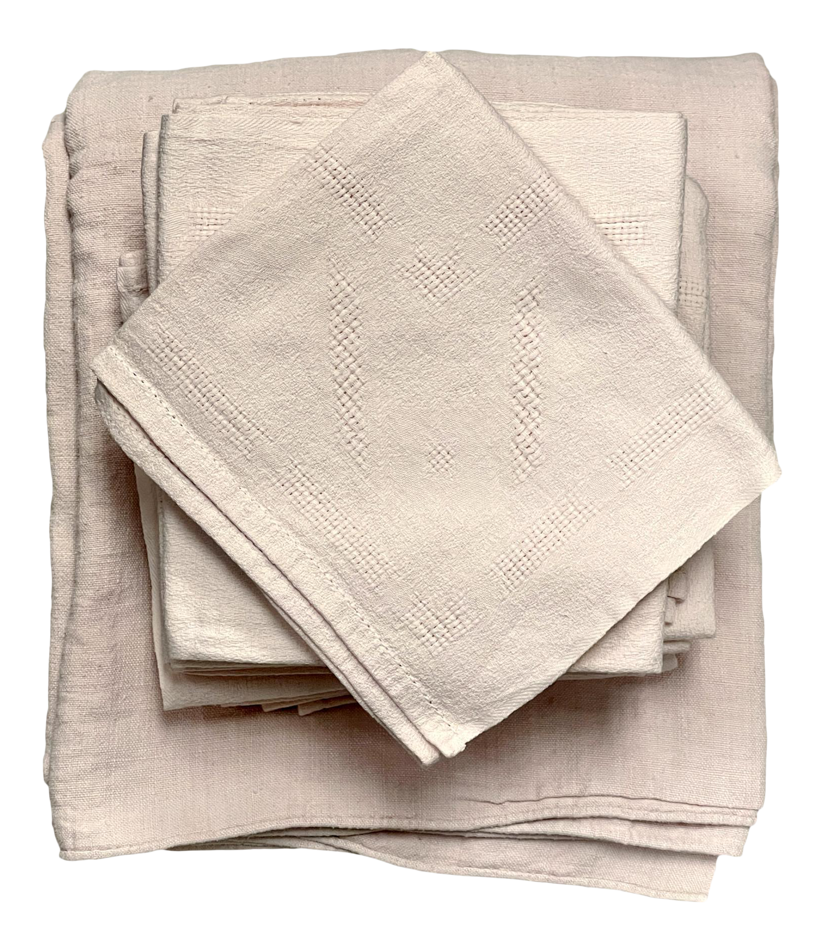 1920s French "Blush" Dinner Napkins W/ Tablecloth, Service for 12