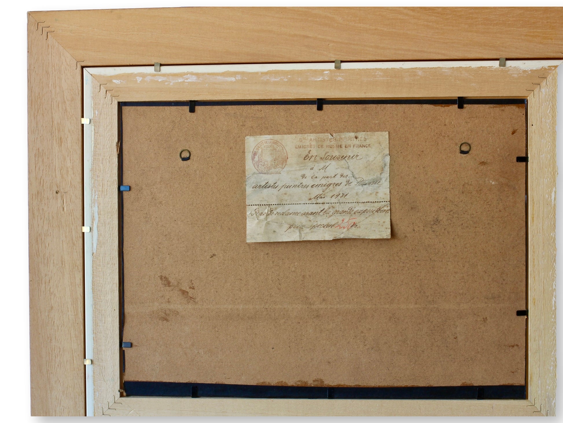 Painted in 1931 by D. Petroff, a Russian artist who emigrated to France after the 1917 Russian Revolution, this pastoral oil painting captures the calm of rural life. Cows graze by a quiet pond, framed by warm autumnal tones. Petroff, along with many Russian émigrés, became part of France's thriving art scene, and this piece reflects his deep connection to nature and peaceful landscapes of the past. His delicate brushwork and attention to detail create a timeless sense of serenity. Signed.