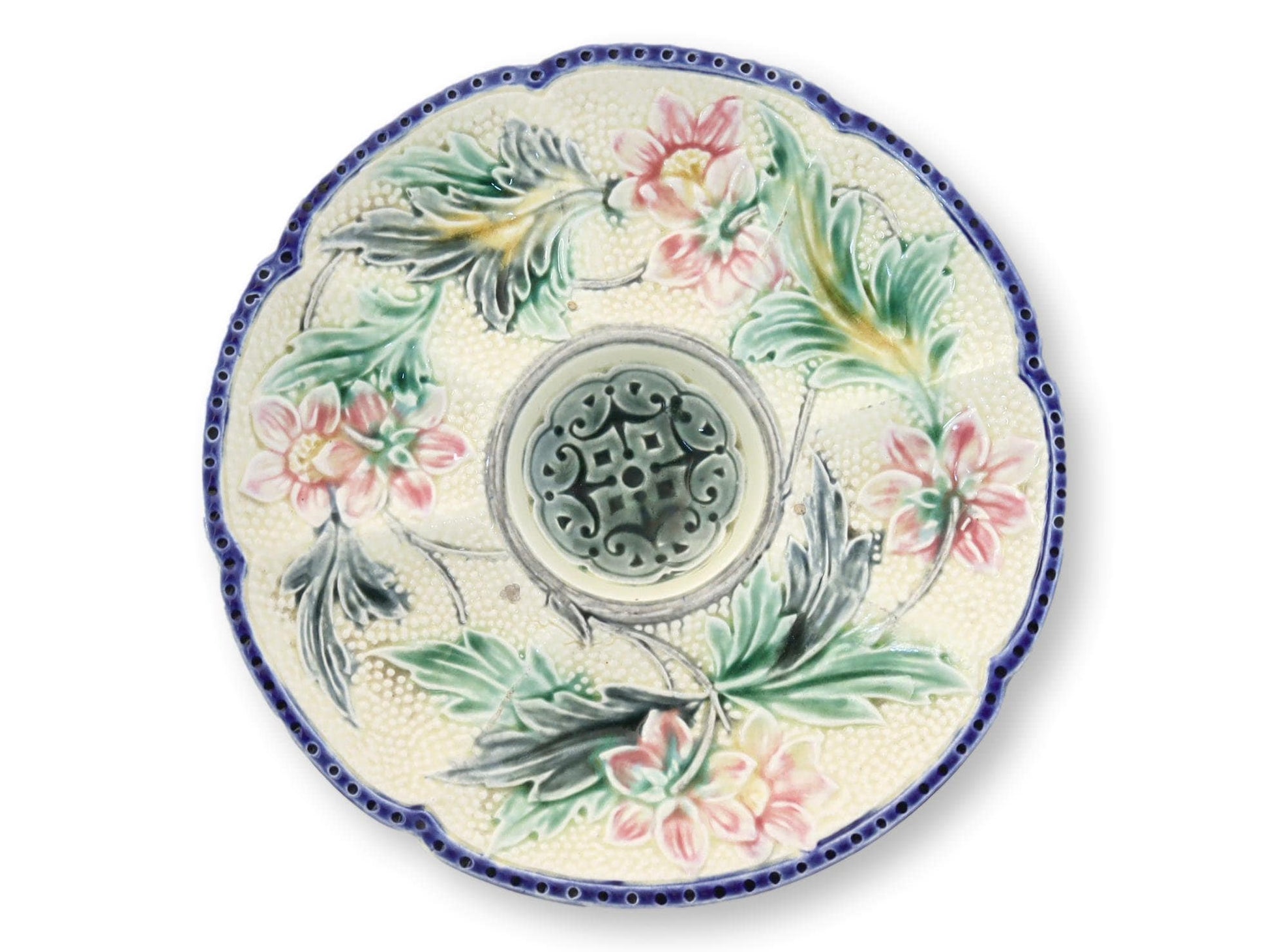 Exquisite set of Antique French Barbotine Majolica Oyster Plates. Crafted with intricate artistry, each plate tells a story of timeless elegance. Add a touch of coastal beauty to your table. With a set of six plates, you can indulge in the pleasure of serving and savoring oysters in a truly luxurious manner. Whether displayed as a decorative accent or used for special occasions, these plates are a collector's dream to find in a set of six. Painter's mark on underside. Made circa 1890.