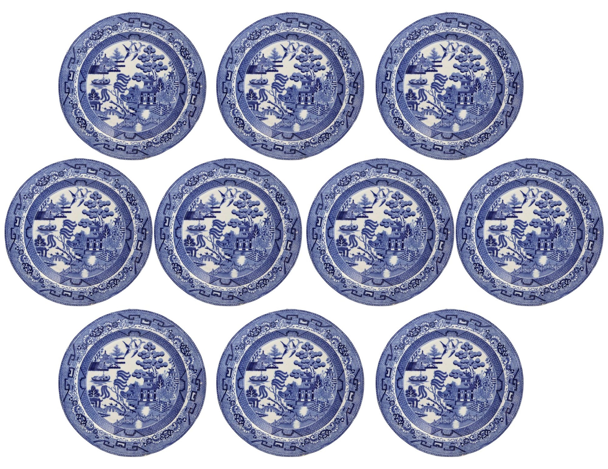 C. 1850s Staffordshire Willow Pattern 8.75" Plates, Set of 10