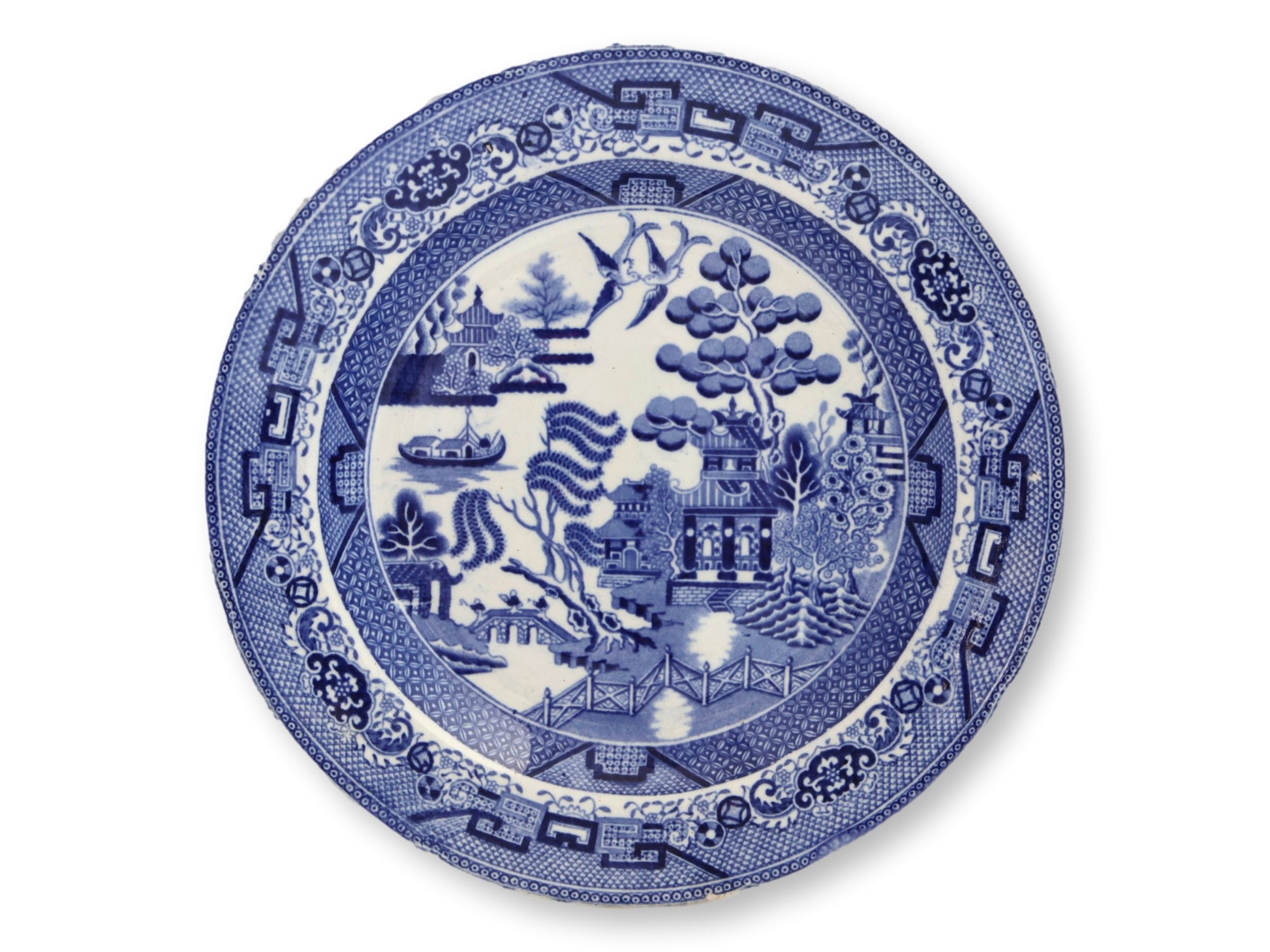 The Willow pattern—introduced in England in the late 18th century—became one of the most beloved designs of the Victorian era, celebrated for its intricate pagodas, flowering trees, and the romantic legend of two star-crossed lovers transformed into doves. This set’s vibrant cobalt tones and crisp detailing capture the enduring charm that has graced English tables for over 200 years.