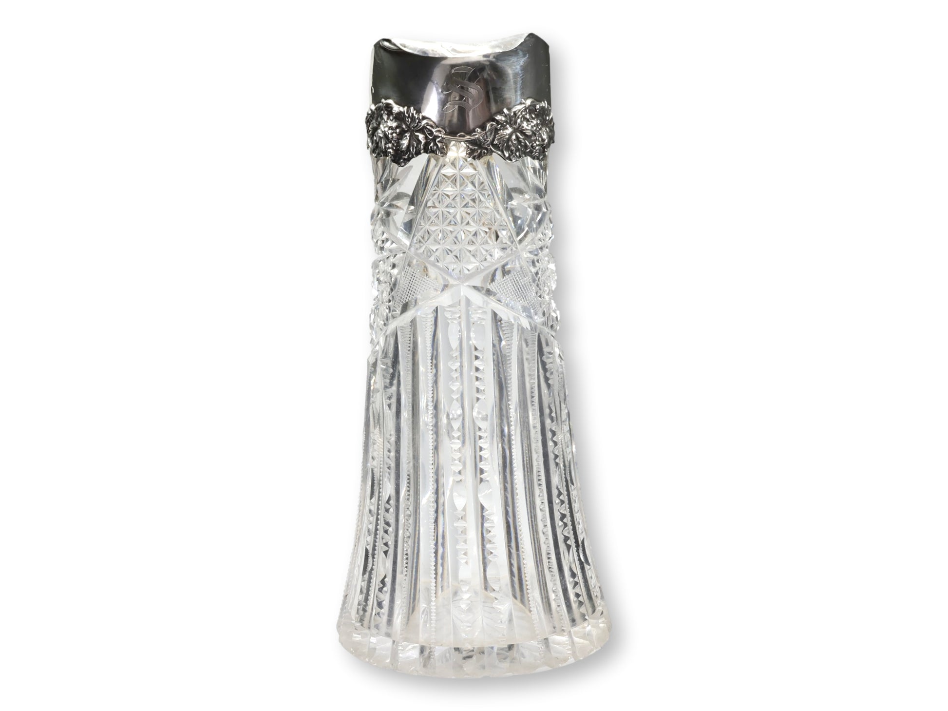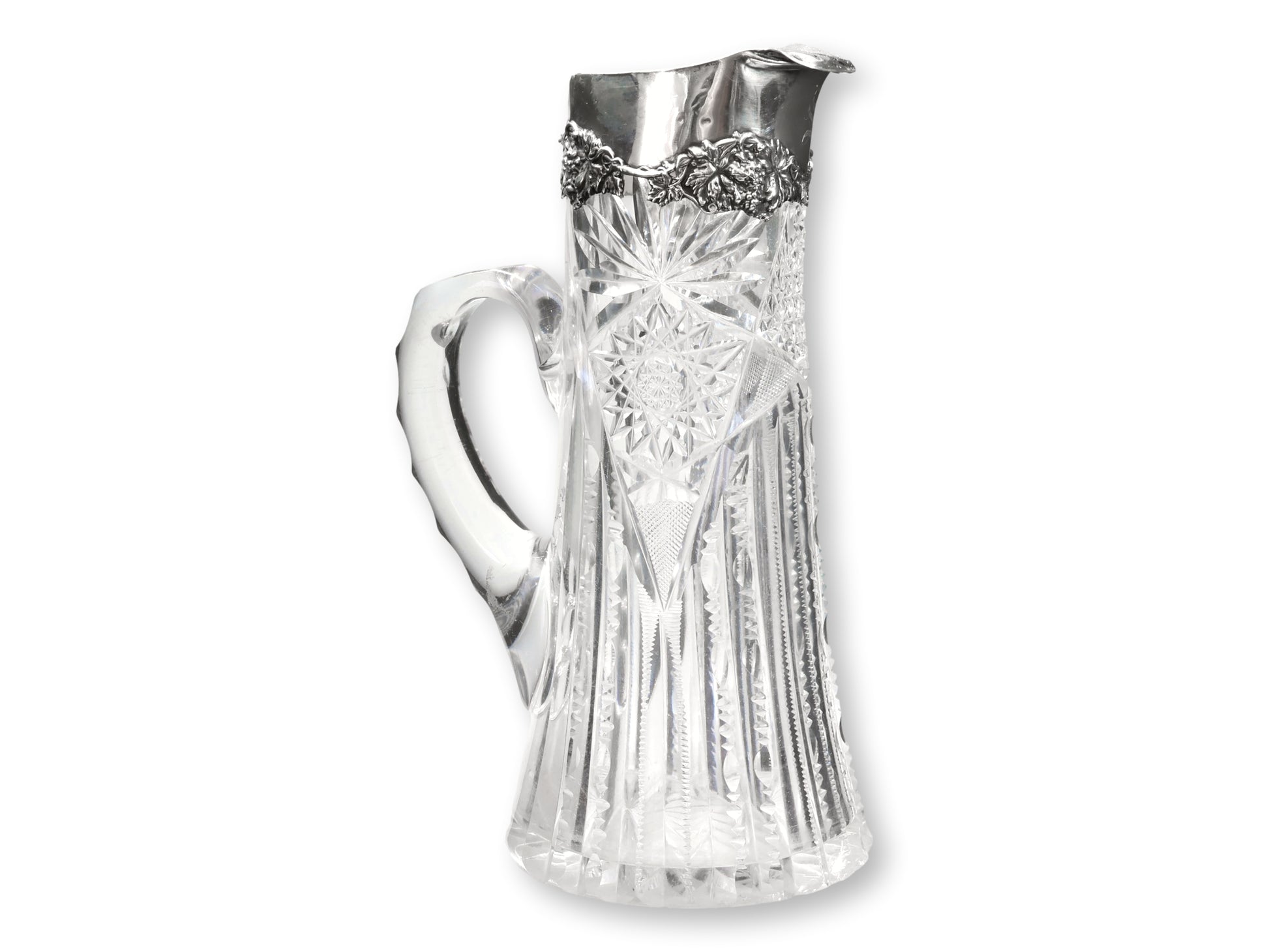 Antique American Brilliant-Cut Crystal & Sterling Silver Claret (wine) Jug