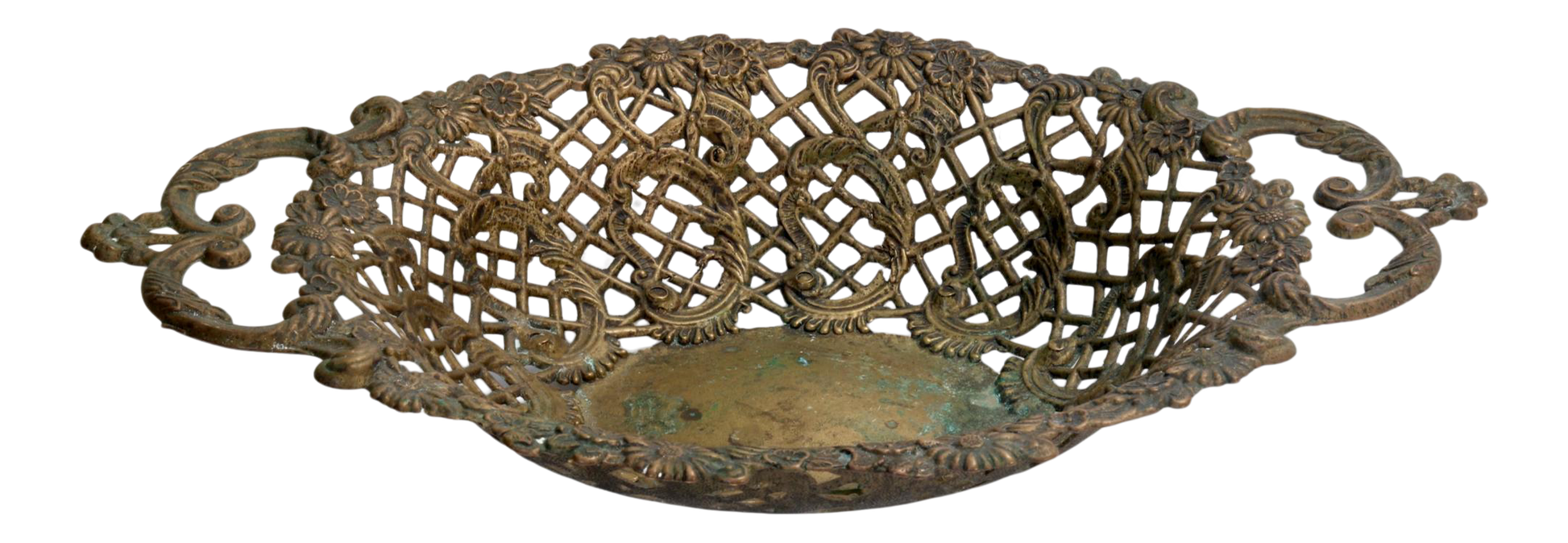 Antique French filagree brass bowl with years of patina, giving this a unique and classic look. Maker's "M.D." mark on bottom