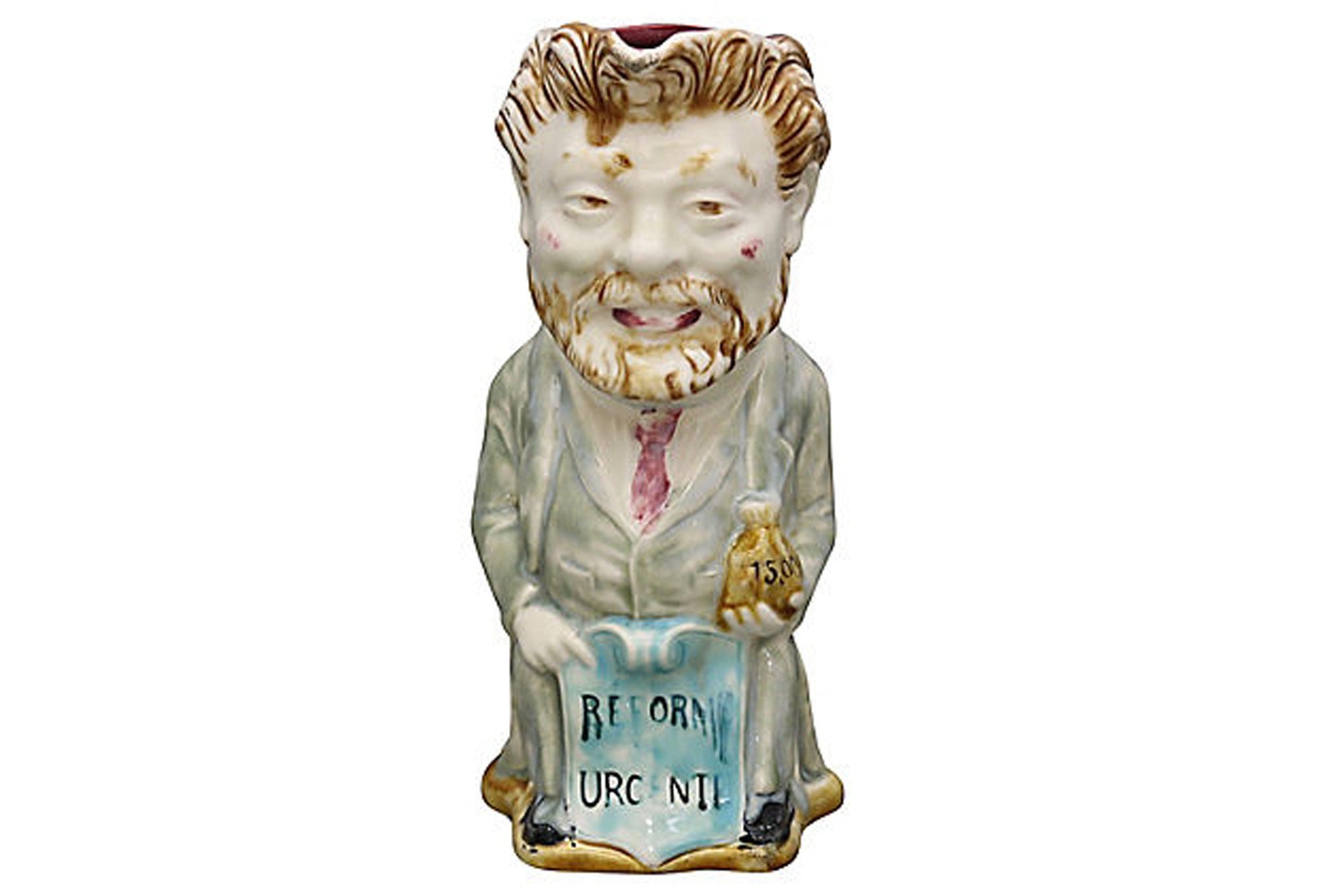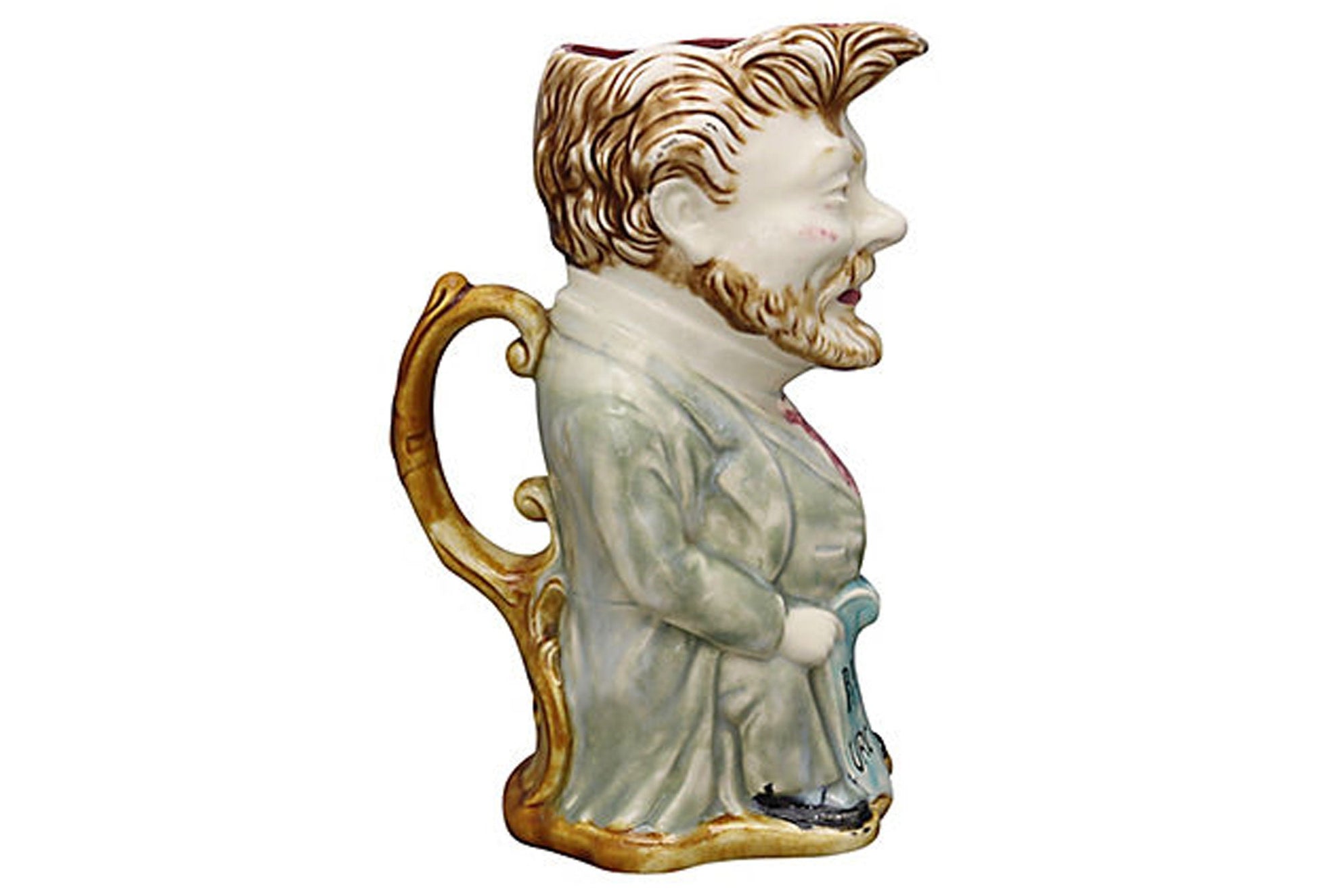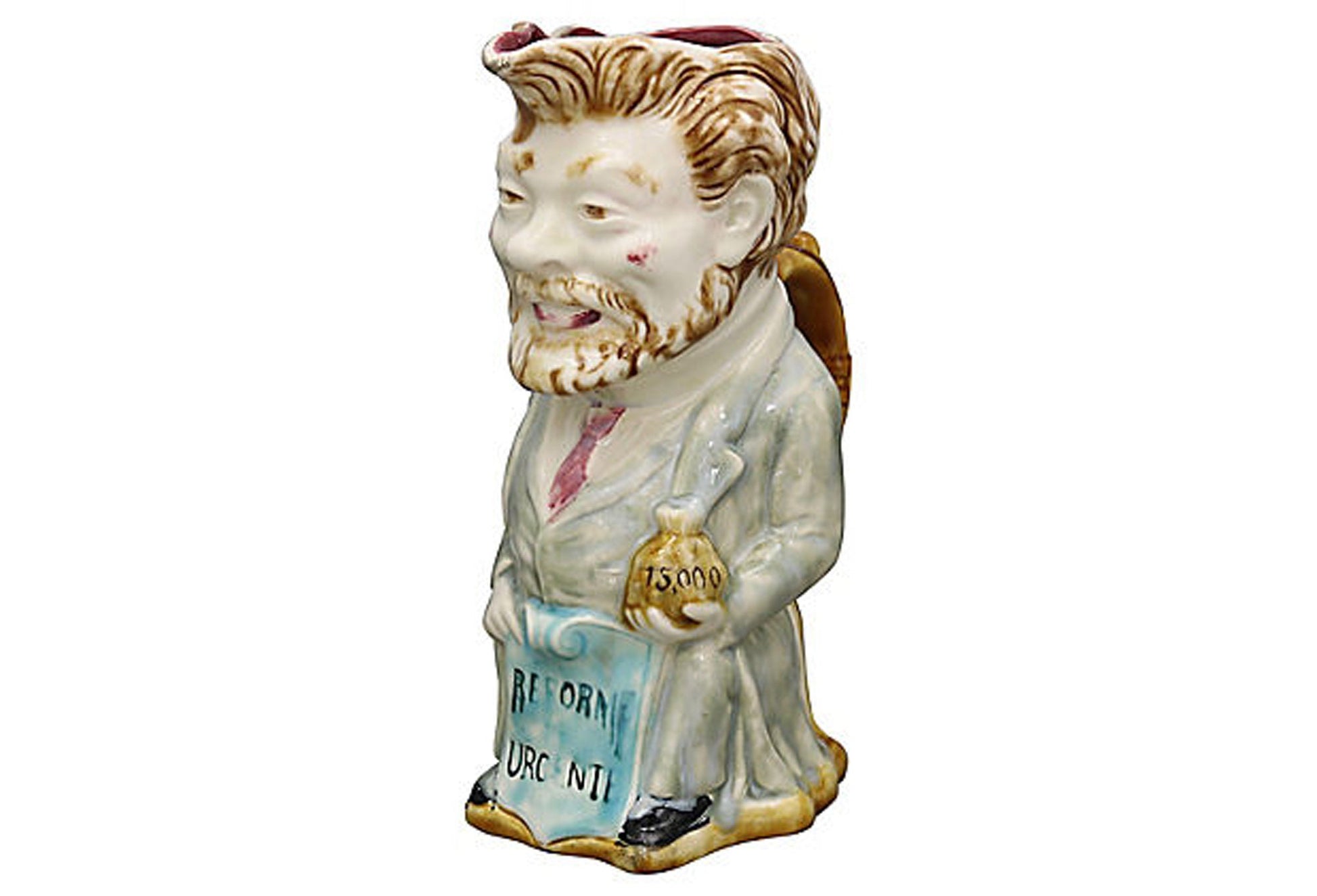 Antique French Majolica Political Jug by Frie Onnaing, Charles Camille Pelletan