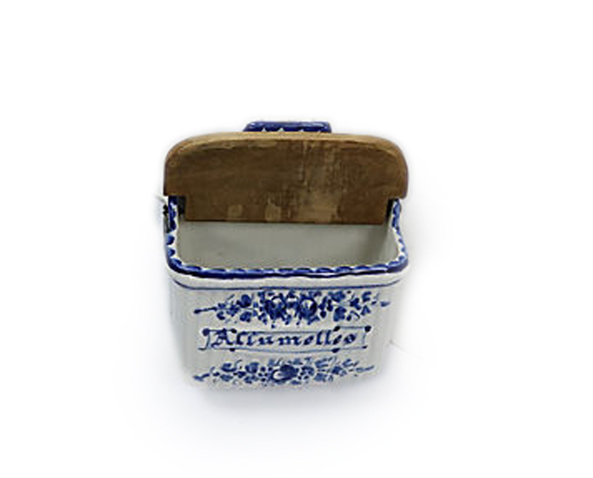 French porcelain match box. Predrilled hole for wall mounting or can sit on a counter/shelf. Light wear. Maker's mark on back.