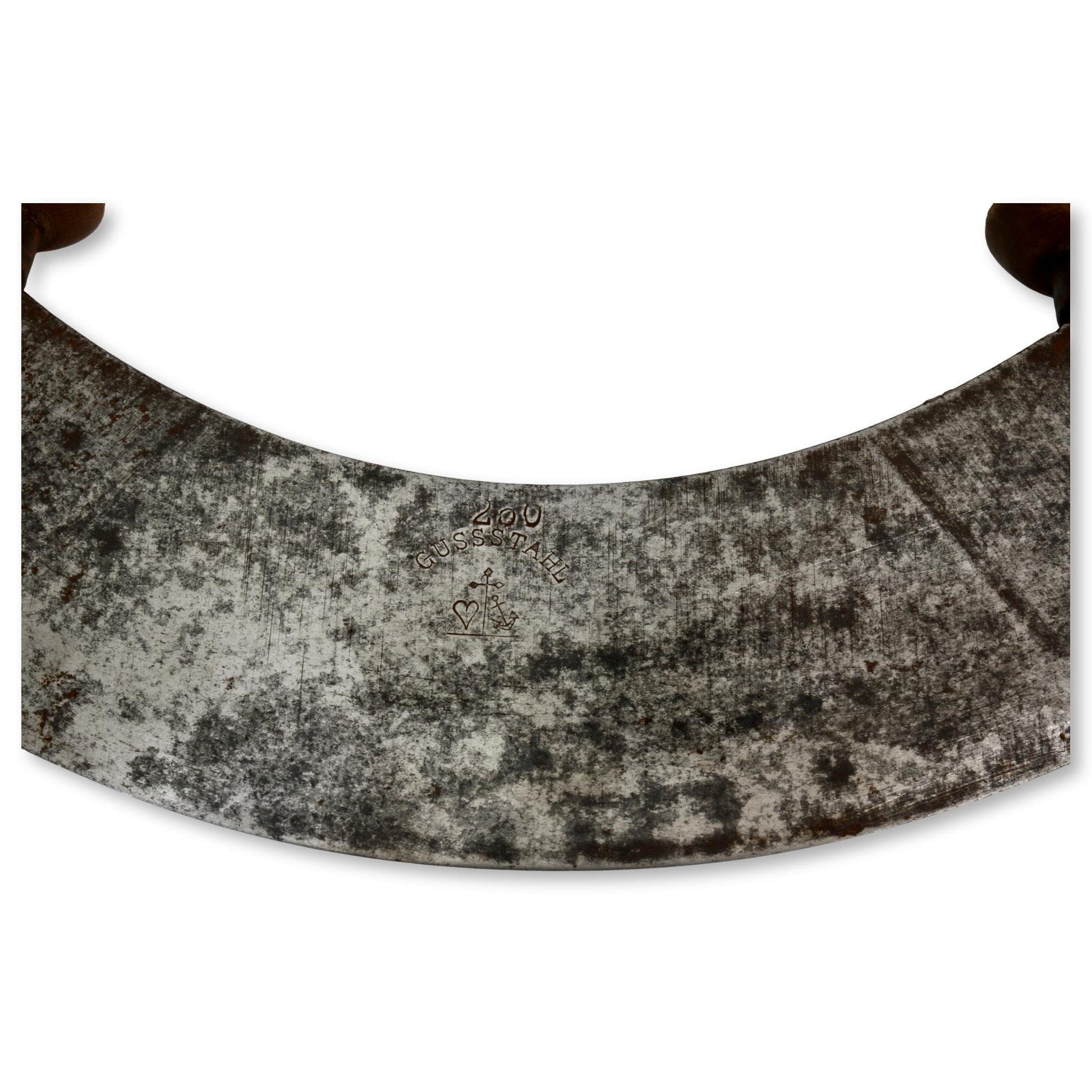 English chopper and cow's head can opener. Dimensions: Cutter, 6.5"L x 1.75"W x 1"H; can opener, 10"L x 1.5"W x 7.5"H. Maker's mark on blade. Wear, oxidation.