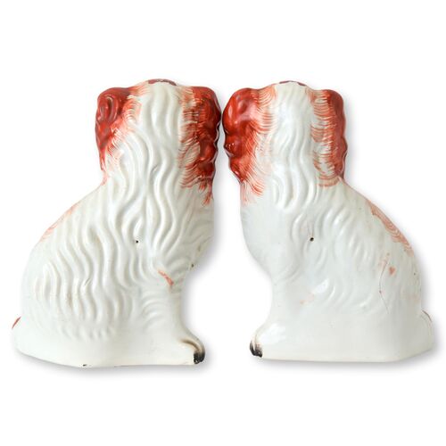 Antique Russet English Staffordshire King Charles Spaniel Dogs