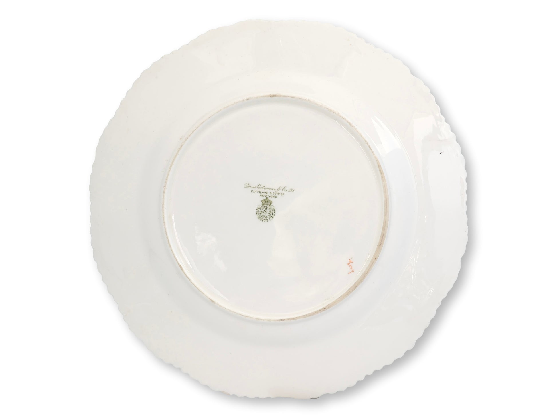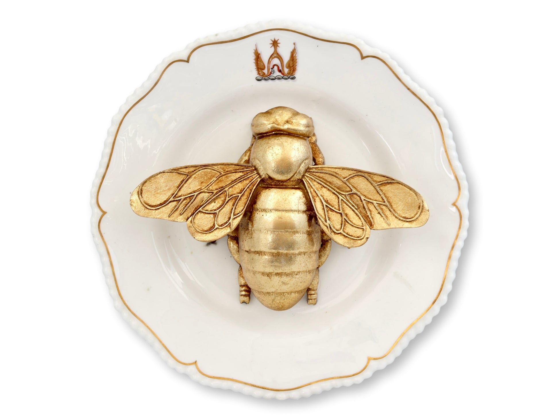 An elegant antique Worcester porcelain plate, finely crested and later adorned with a hand-applied gold leaf bee. The plate bears the prestigious Davis Collamore & Co. retailer’s mark—New York purveyors known for importing the finest English porcelain in the late 19th century. A sophisticated marriage of heritage and whimsy, ideal for display or as part of a curated wall collection.