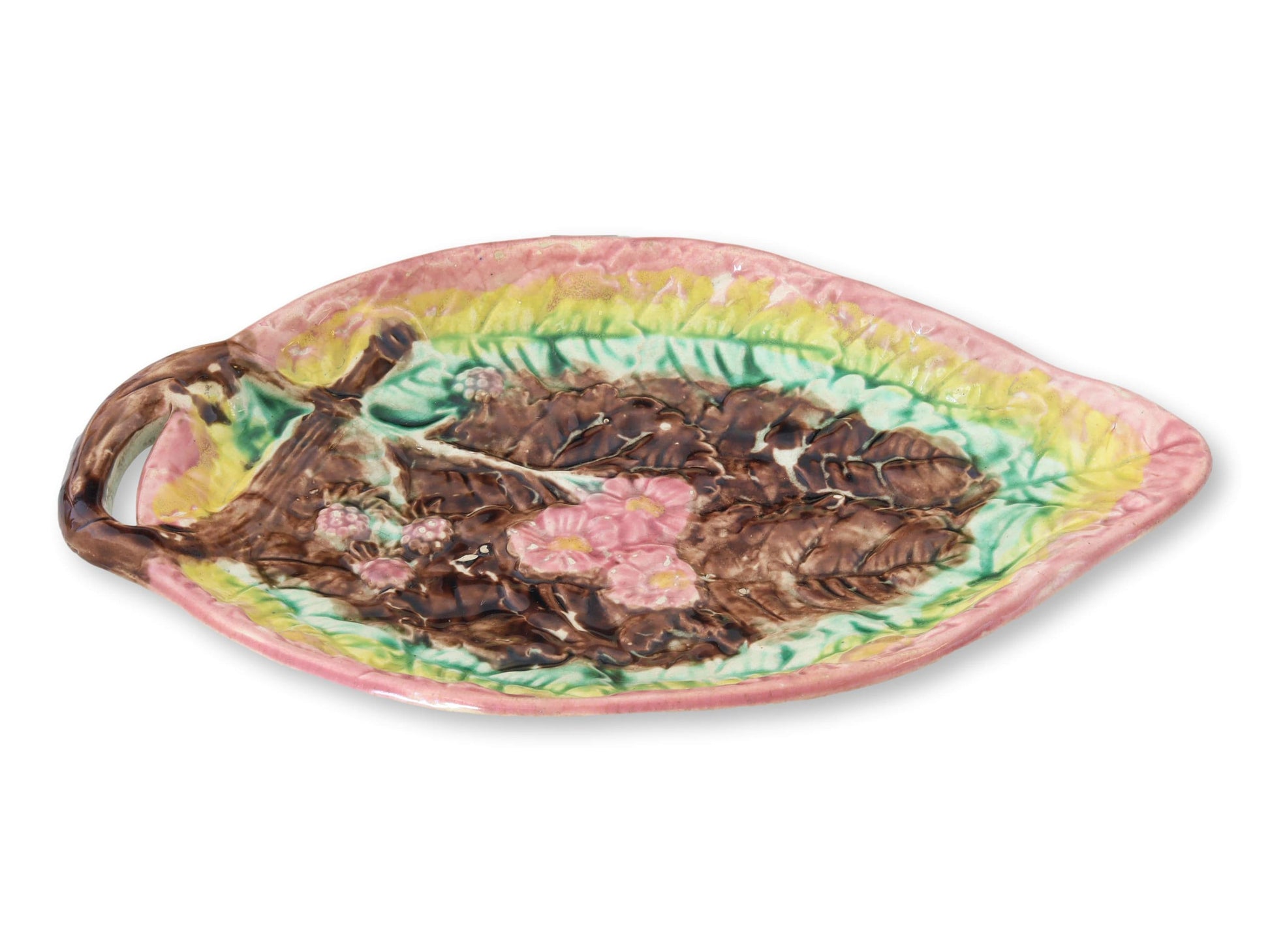 Antique English Majolica Begonia Dish