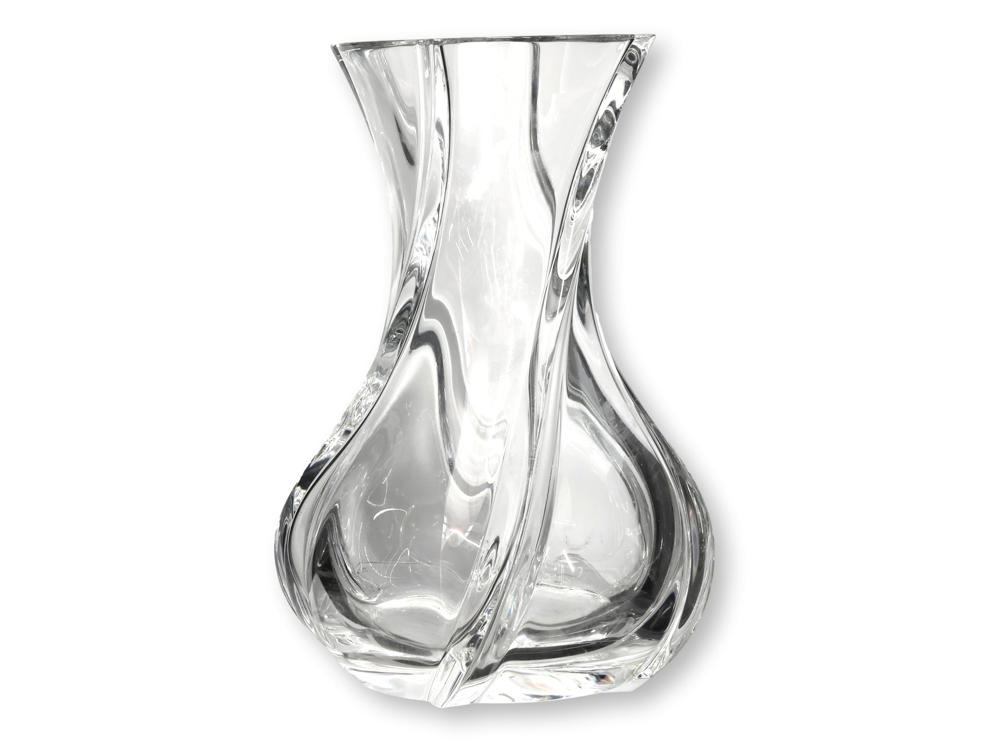 A masterclass in sculptural design, this Baccarat crystal vase captures the effortless sophistication of midcentury French entertaining. Its serpentine silhouette twists gracefully, refracting light in soft, fluid waves. Whether filled with long-stemmed blooms or displayed as a standalone statement, this piece embodies Baccarat’s hallmark precision and Parisian poise—equal parts glamour and restraint.