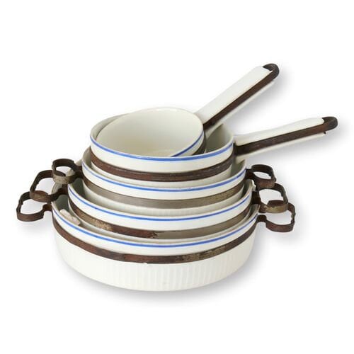 A set worthy of Julia herself. This early 20th-century French porcelain pan ensemble marries form and finesse — delicate hand-painted florals over oven-safe porcelain that’s now best reserved for display. Imagine them lining the wall of a Parisian kitchen, where recipes were whispered with as much passion as they were cooked. Whether hung as art, styled on open shelving, or used to serve with a wink of drama, these five pieces are less cookware and more culinary couture. A true collector’s find for those who believe the kitchen is the heart of entertaining.