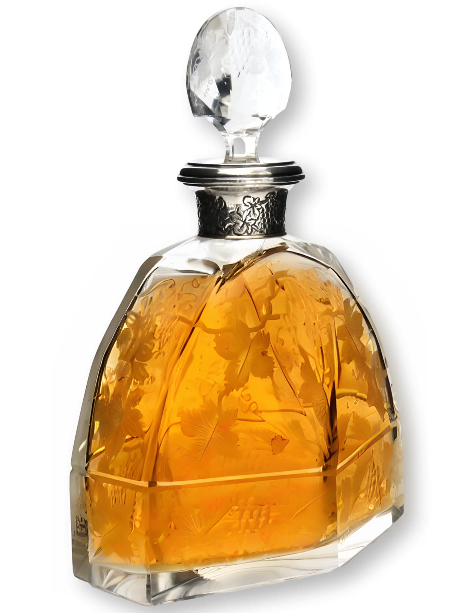 Elevate your barware collection with this exquisite Antique Art Deco decanter, boasting a sterling silver cuff and an elegant crystal stopper. The body features a faceted design, refracting light beautifully through the rich amber liquid within. Ideal for the connoisseur of fine spirits and timeless design.