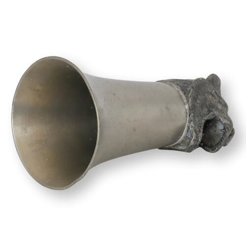 Early 1900s French pewter stirrup cup.The cup is often shaped like the head of an animal, in this case, a tiger, with detailing to replicate the life like features of the animal. Traditionally used to serve a parting drink to guests while they were already on horseback, and ready to depart. Stirrup cups have historical significance and were particularly popular in the 18th and 19th centuries.