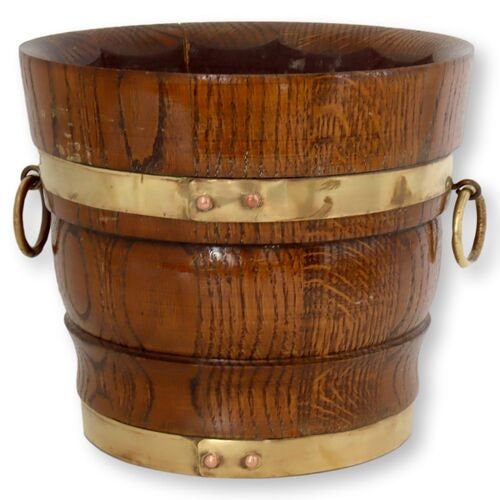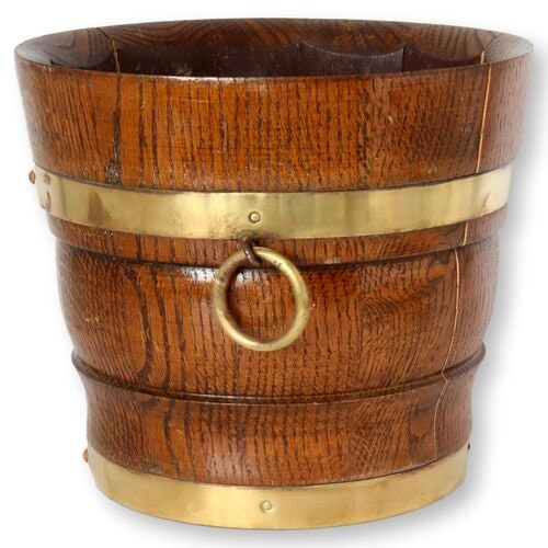 Antique English banded planter or pot with loop handles. This is a "banded" piece, it is not glued. It is held together tightly with the brass banding. Made circa 1880.