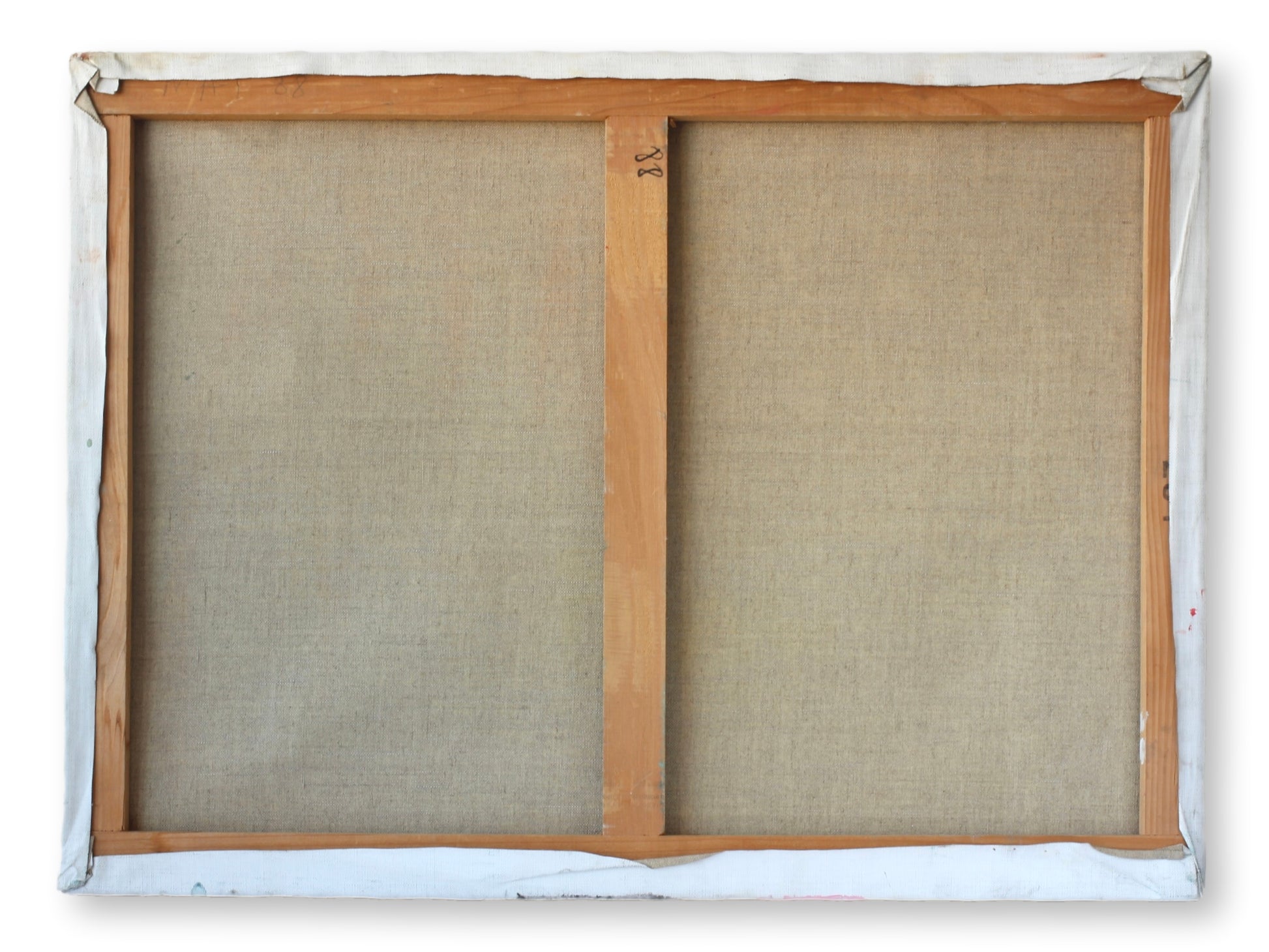 Bold, chaotic, and completely mesmerizing—this French abstract expressionist work is the visual equivalent of a jazz solo. Electric brushwork, pointillist dots, and layered color fields swirl in vivid reds, blues, yellows, and blacks, forming a composition that feels both spontaneous and orchestrated.