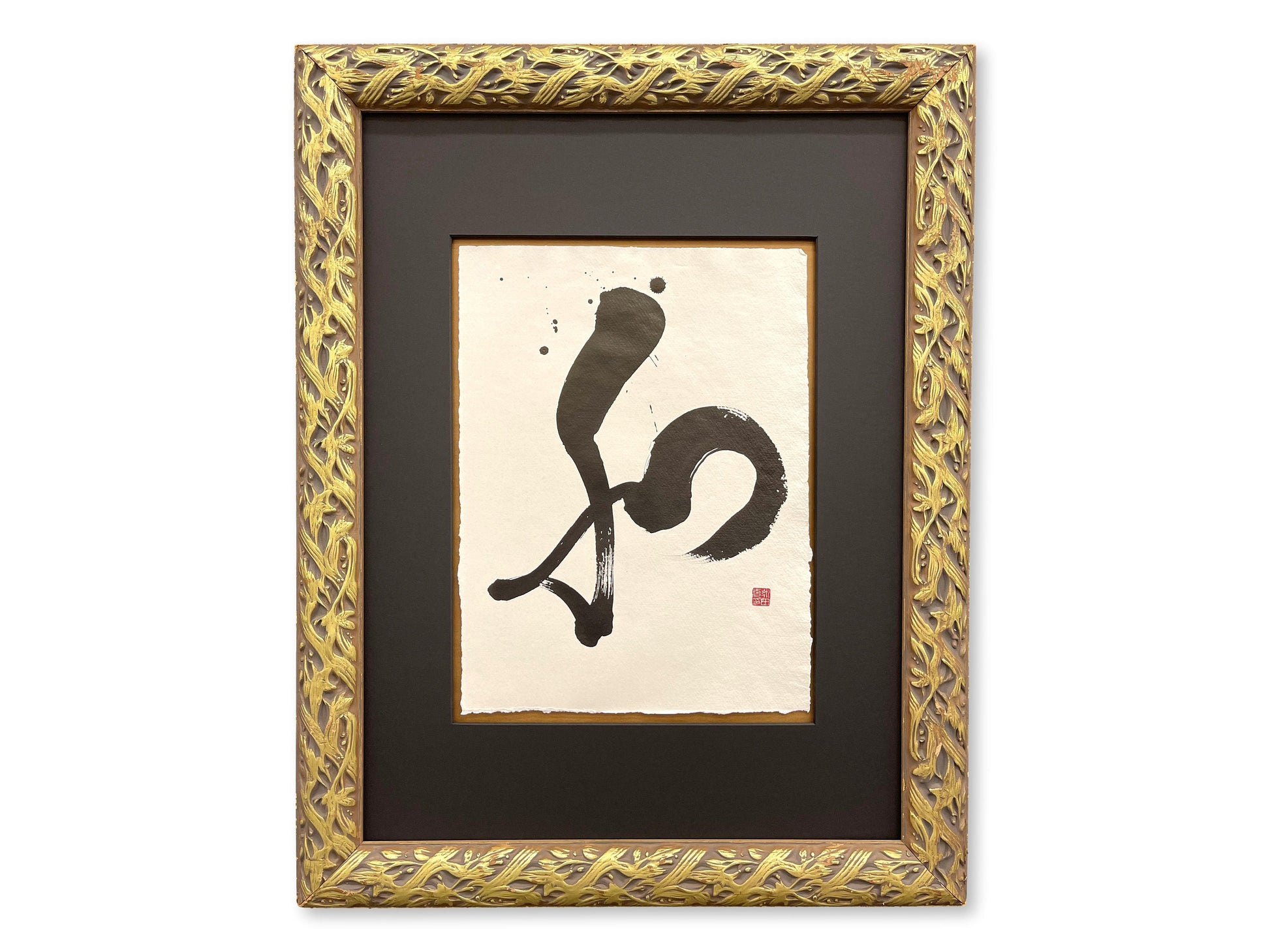 Japanese Sumi-E Painting "Peace" Original Japanese Sumi-e ink calligraphy symbol for "Peace". Subjects are painted with black ink in gradations achievable by dissolving ink in water. Painted on handmade rag paper, double matted, floated on gold and black under glass in a vintage frame. Artist's signature in corner.