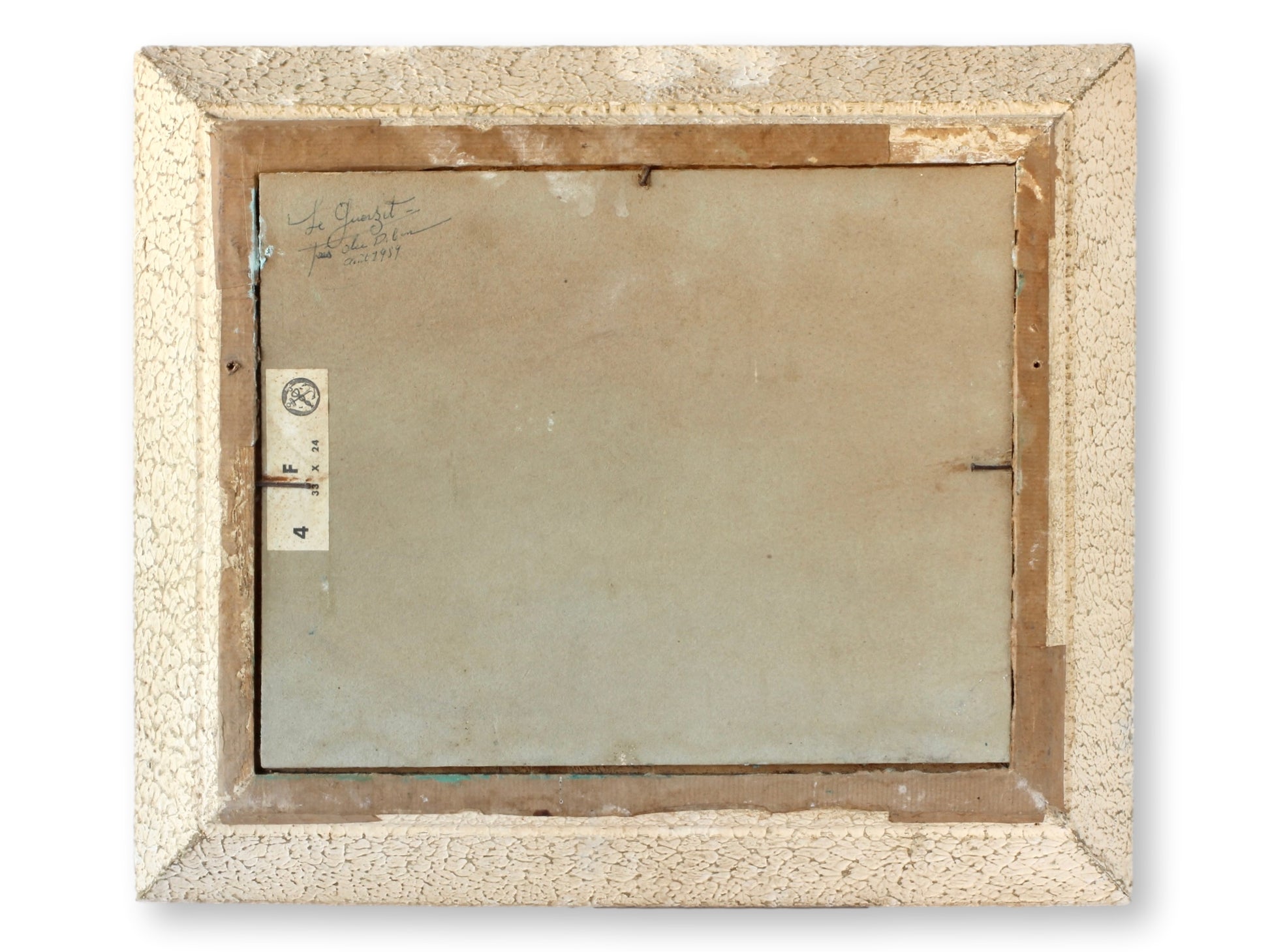 This charming midcentury French oil painting captures the peaceful essence of a coastal village. With soft brushstrokes and a vibrant color palette, the artist conveys the tranquility of rural French life, with houses overlooking the sea. Signed by the artist, this piece is framed in a textured vintage frame that complements its timeless appeal. Perfect for adding a touch of French countryside charm to any space.