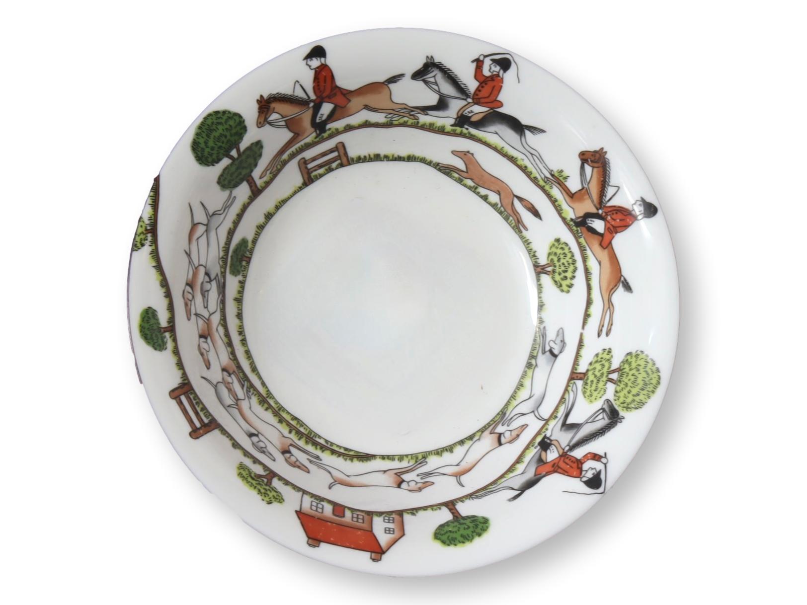 Midcentury Hunting Scene Cereal / Serving Bowl