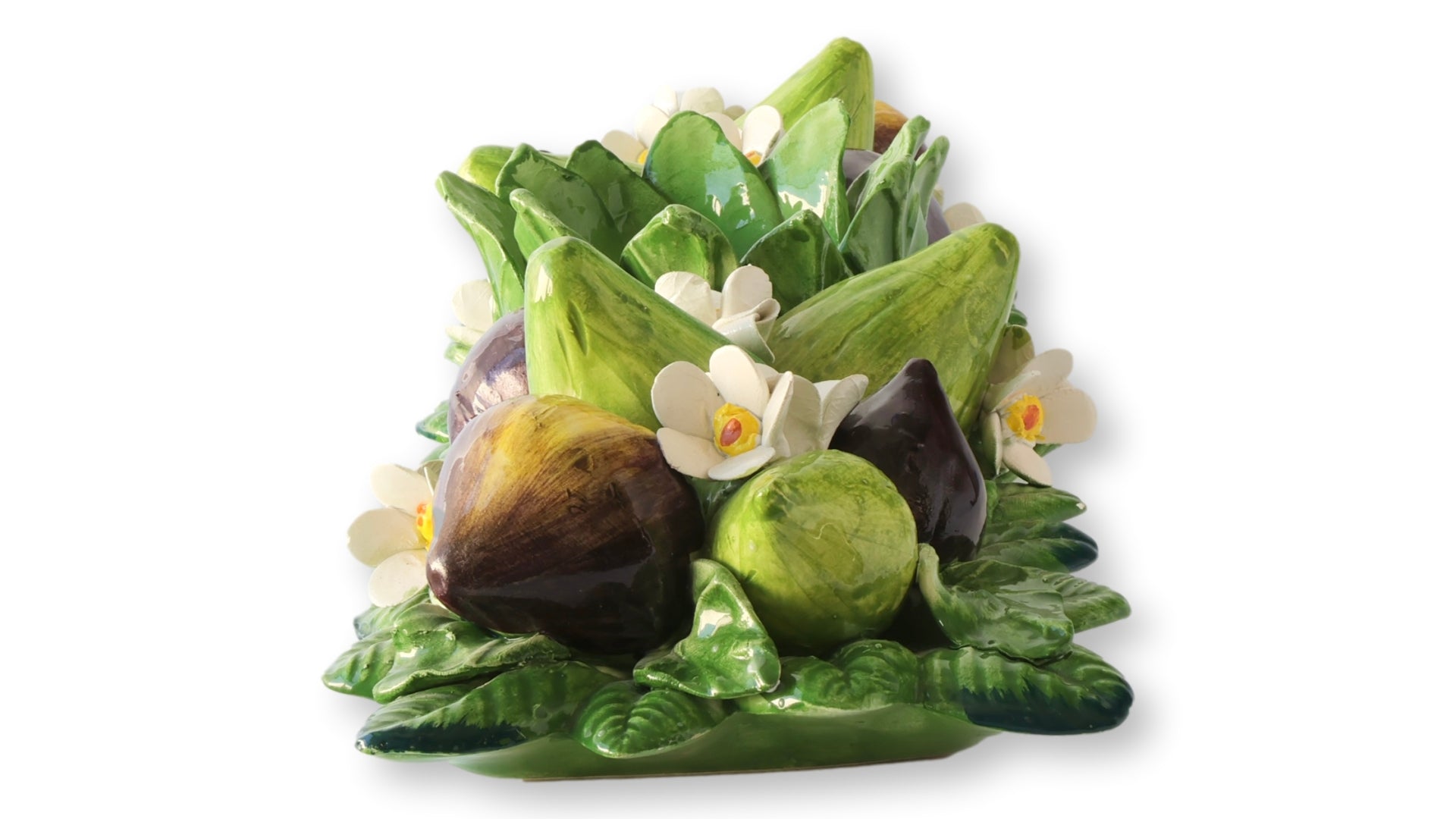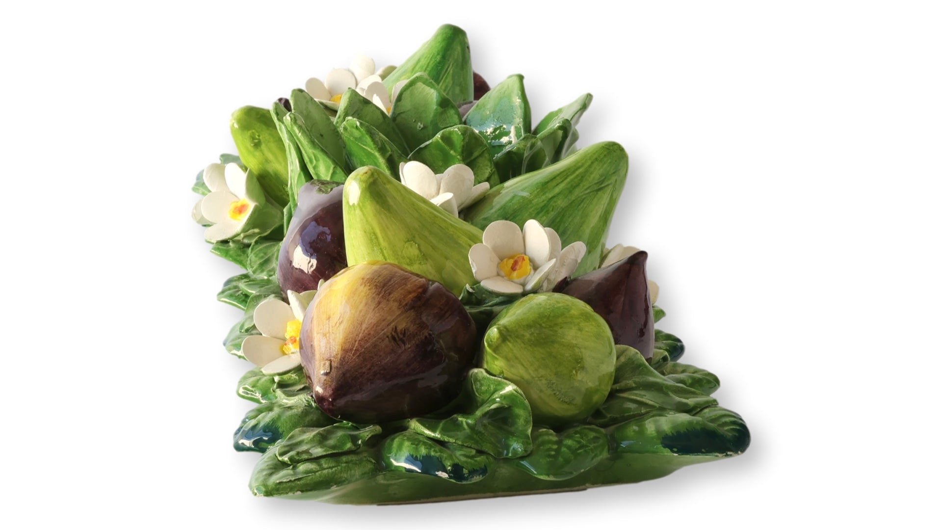 Midcentury Italian Trompe L'oeil Fig & Flower Candleholder Centerpiece