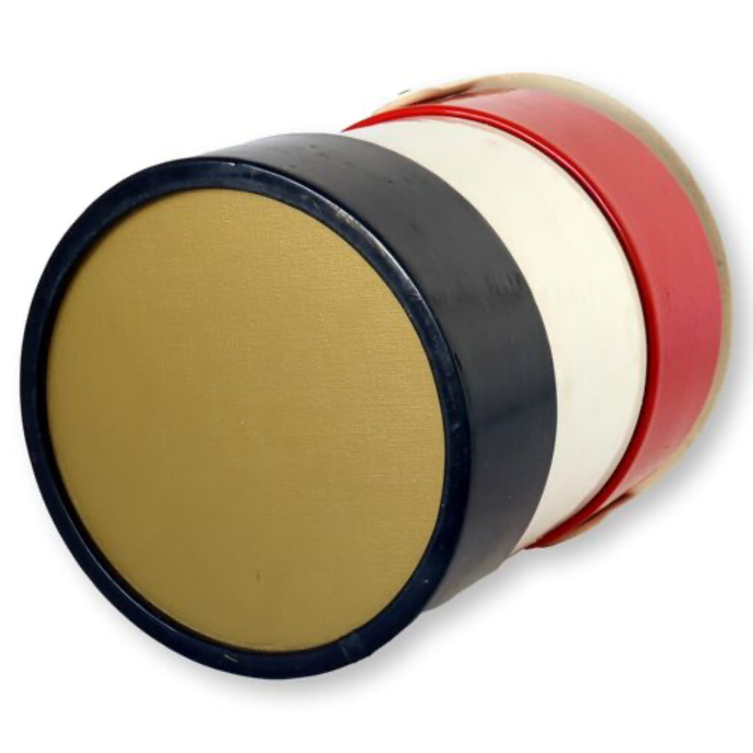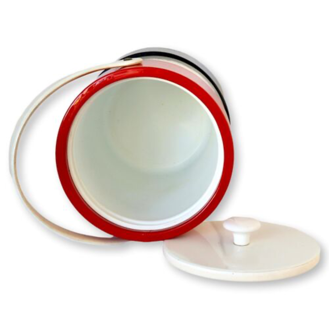 Bonjour to the chicest thing on your bar cart. This vintage ice bucket, purchased in Paris, wears the tricolor like it’s headed to a soirée in Saint-Germain. Faux patent leather, bold French attitude, and a top handle ready for mingling.