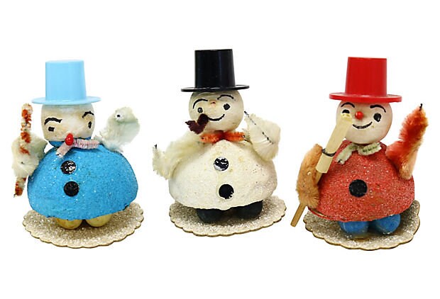 Midcentury Snowman Figures, S/3