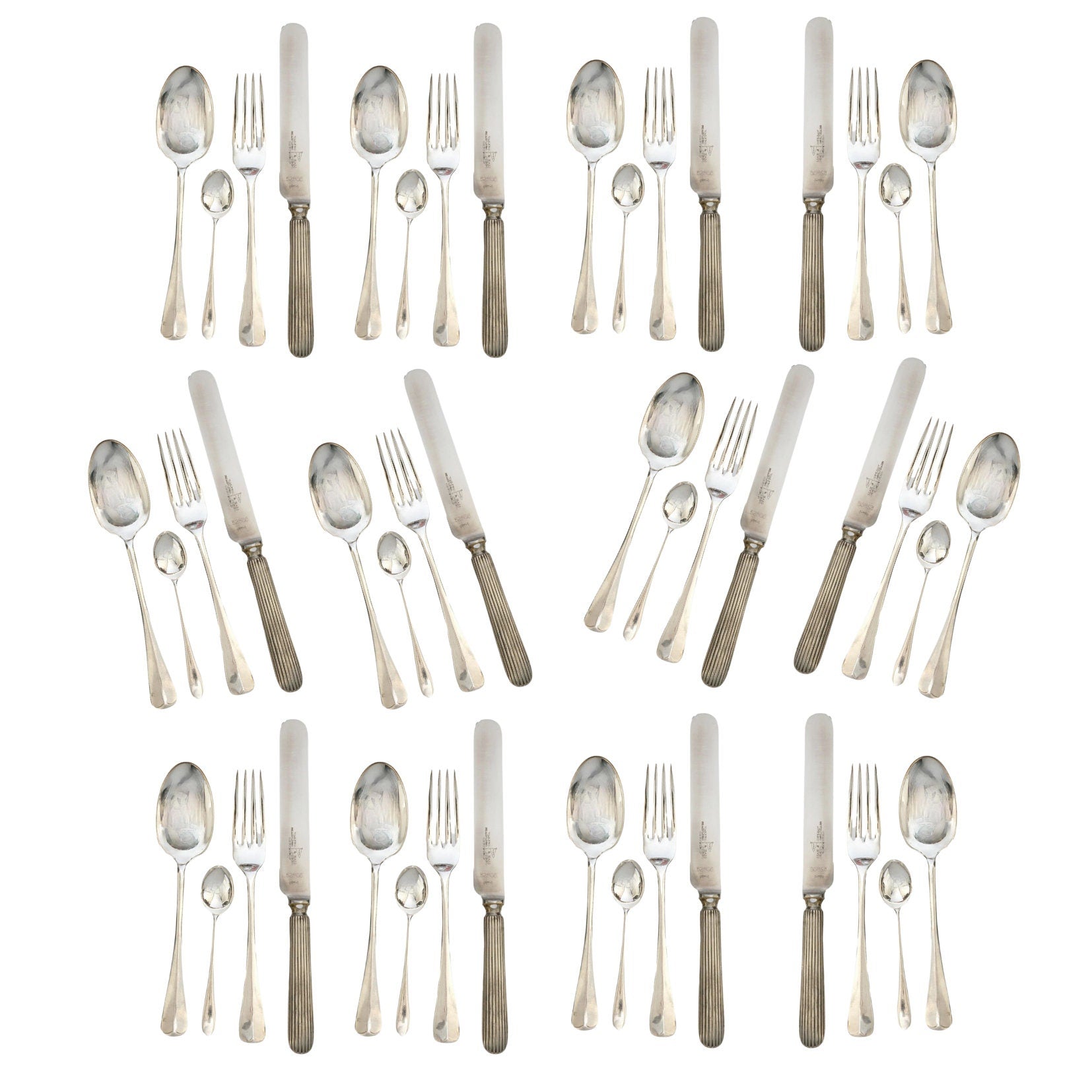 Midcentury Walker & Hall Silver-Plate Luncheon Set w/ Service for 12 | Art Deco Rat Tail Pattern
