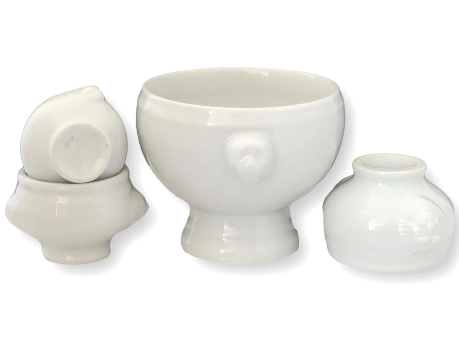 These antique white porcelain lion bowls are a testament to timeless elegance. Featuring exquisite craftsmanship and lifelike lion motifs, they add a touch of grandeur to any space. Whether used for serving or as decorative accents, these pieces make a statement of refined taste and sophistication.