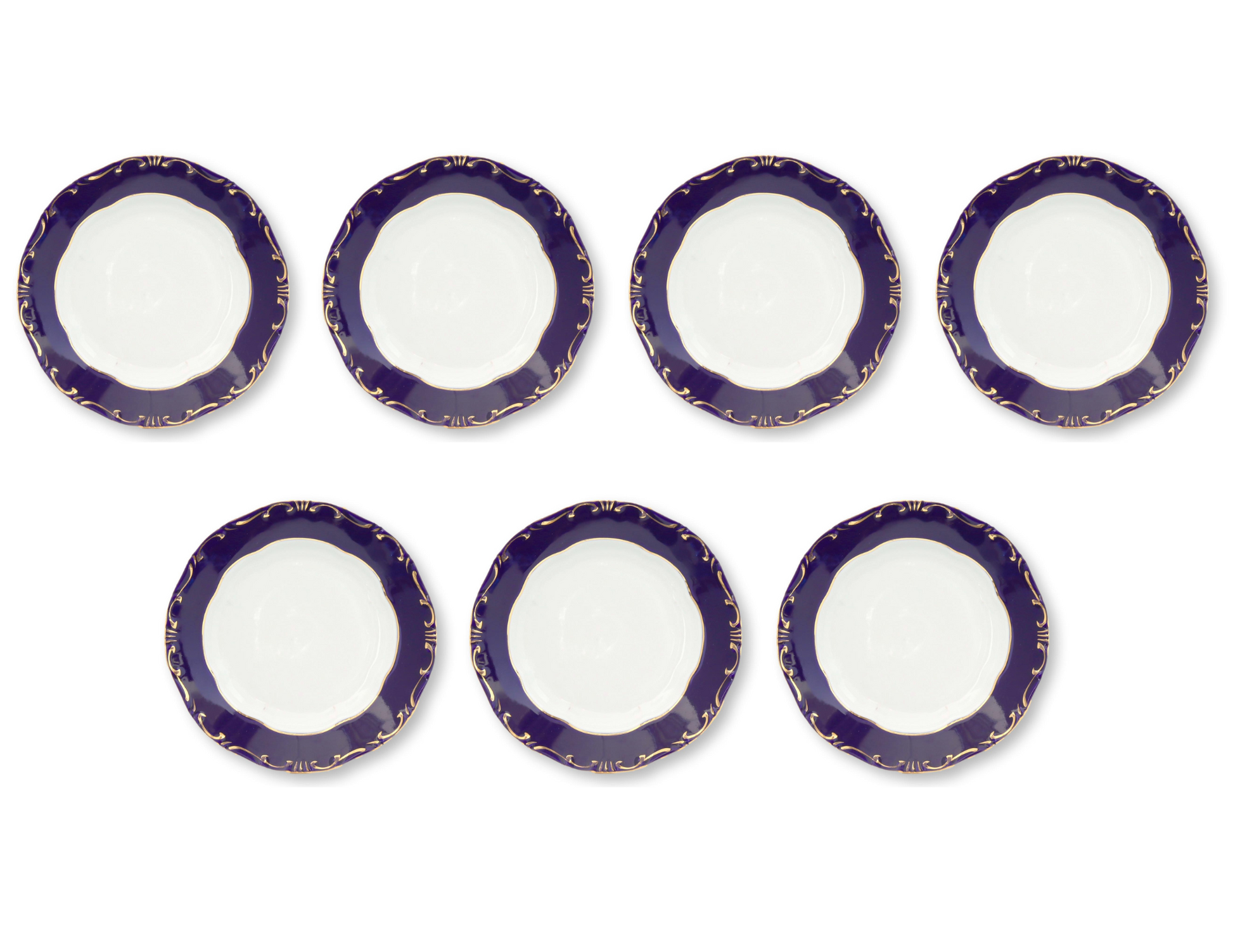 Set of 7 Pompadour Cobalt & 18K Soup/Salad Bowls