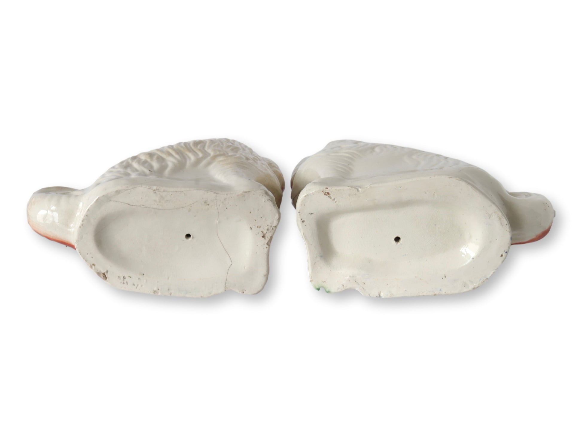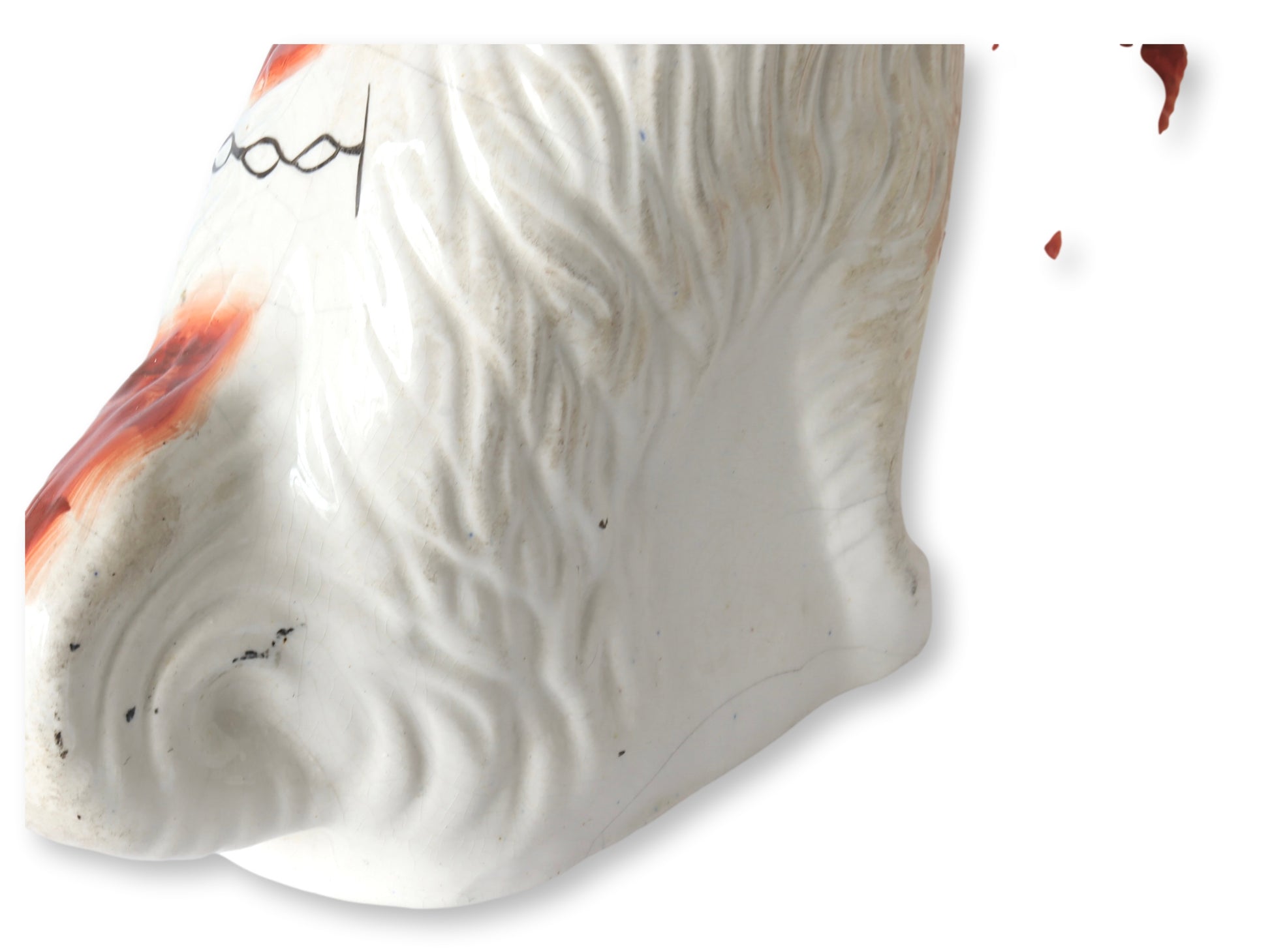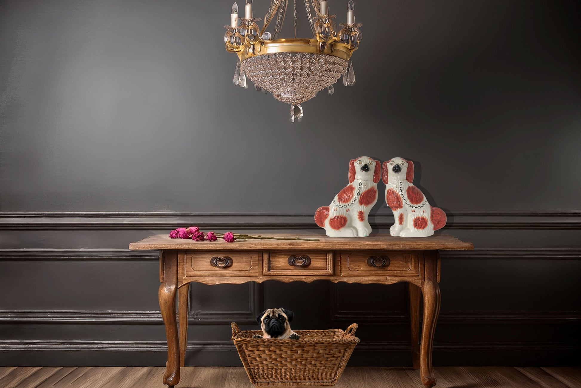 Extremely rare and unapologetically fabulous, this oversized pair of 19th-century Staffordshire spaniels brings all the charm and none of the subtlety. Hand-painted in classic russet and cream with expressive, slightly judgy faces (don’t take it personally—they judge everyone), these pups were made to command attention from the mantel, hearth, or entryway.