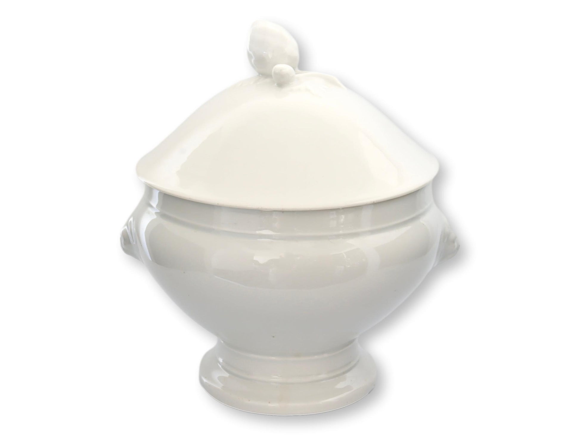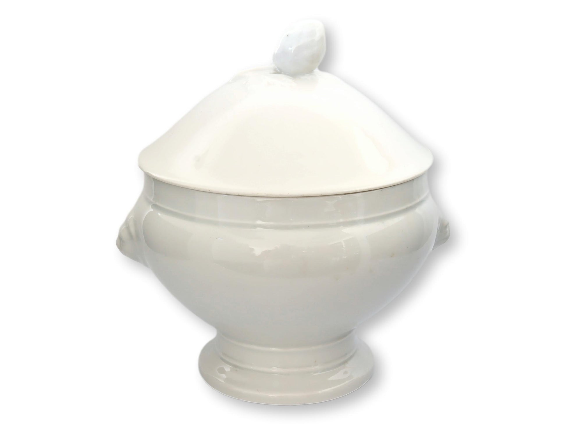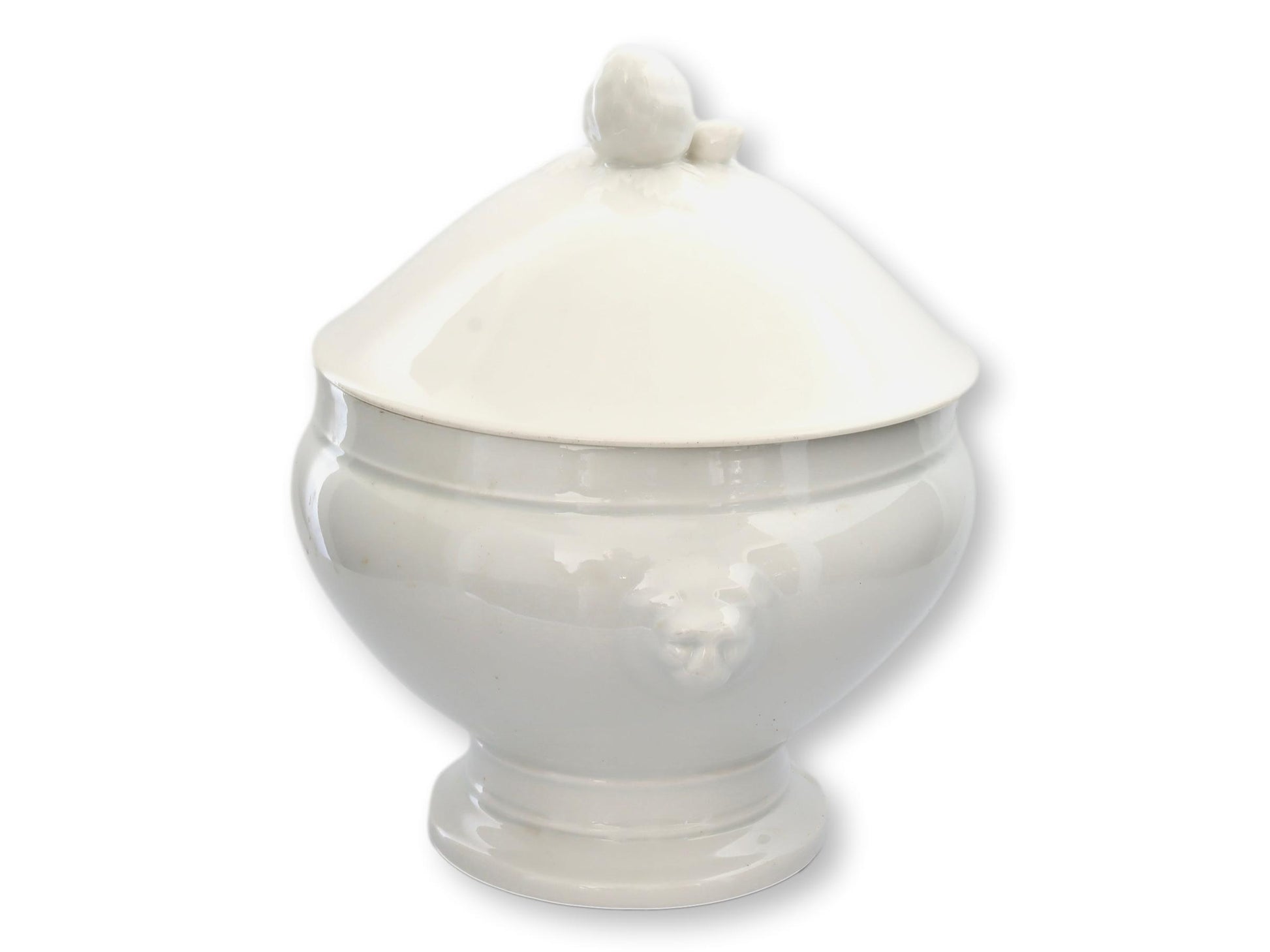 Vintage French White Porcelain Lions Head Tureen w/ Tulip Handle