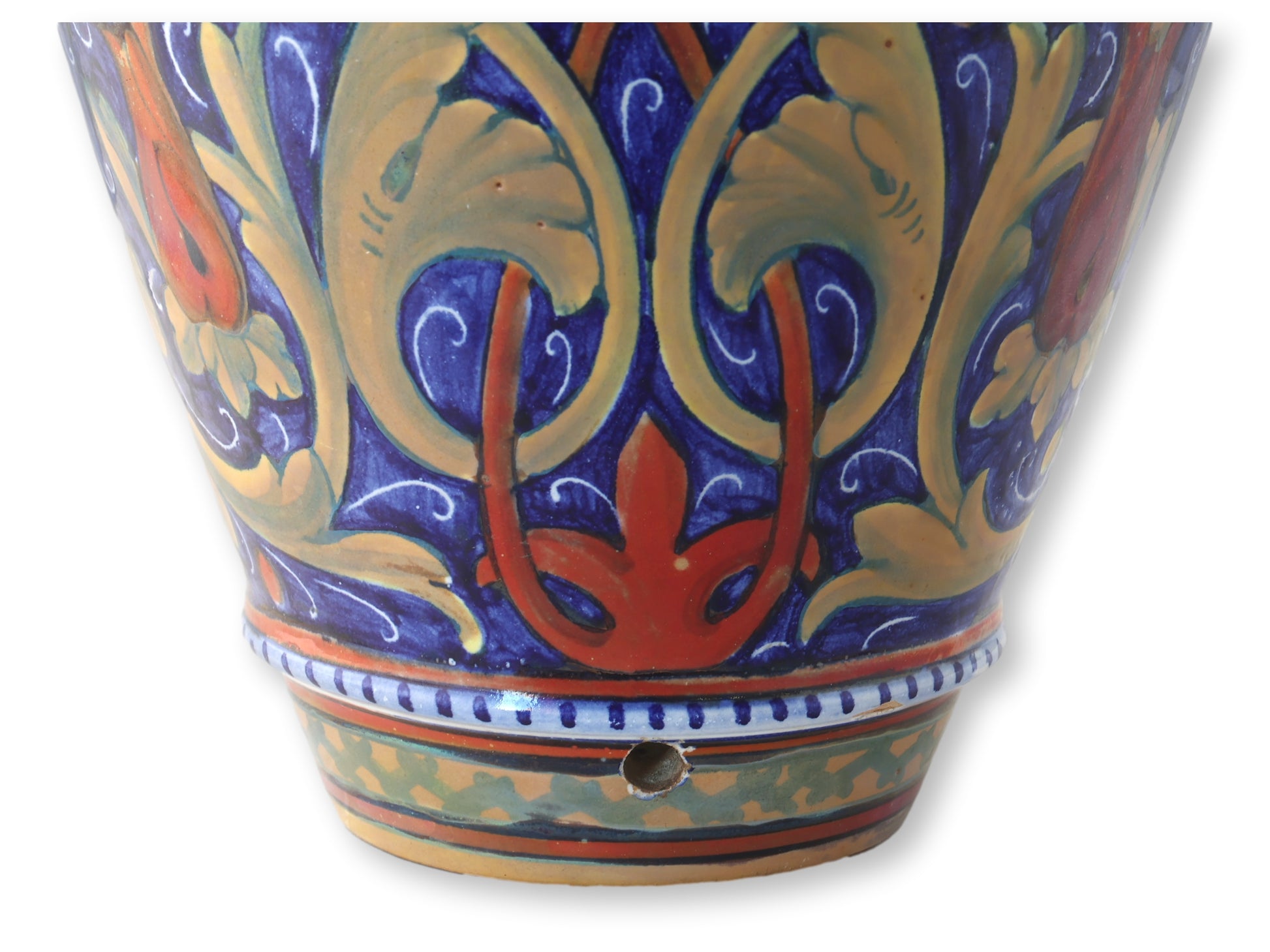 This exceptional Italian majolica vase is a striking example of the craftsmanship produced by Società Ceramica Umbra, founded by Paolo Rubboli in the late 19th century in Gualdo Tadino, Umbria. Known for reviving the Renaissance-era lustro technique and embracing elaborate, polychrome decoration, Rubboli’s workshop became a key figure in the tradition of Italian ceramics. Likely dating from the early to mid-20th century. Marked on underside.