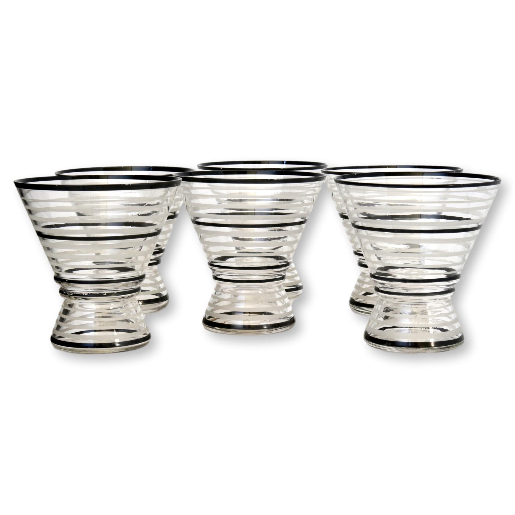 Set of six 1950s cocktail glasses. They have an interesting look when full as the bases are hollow. No maker's marks.