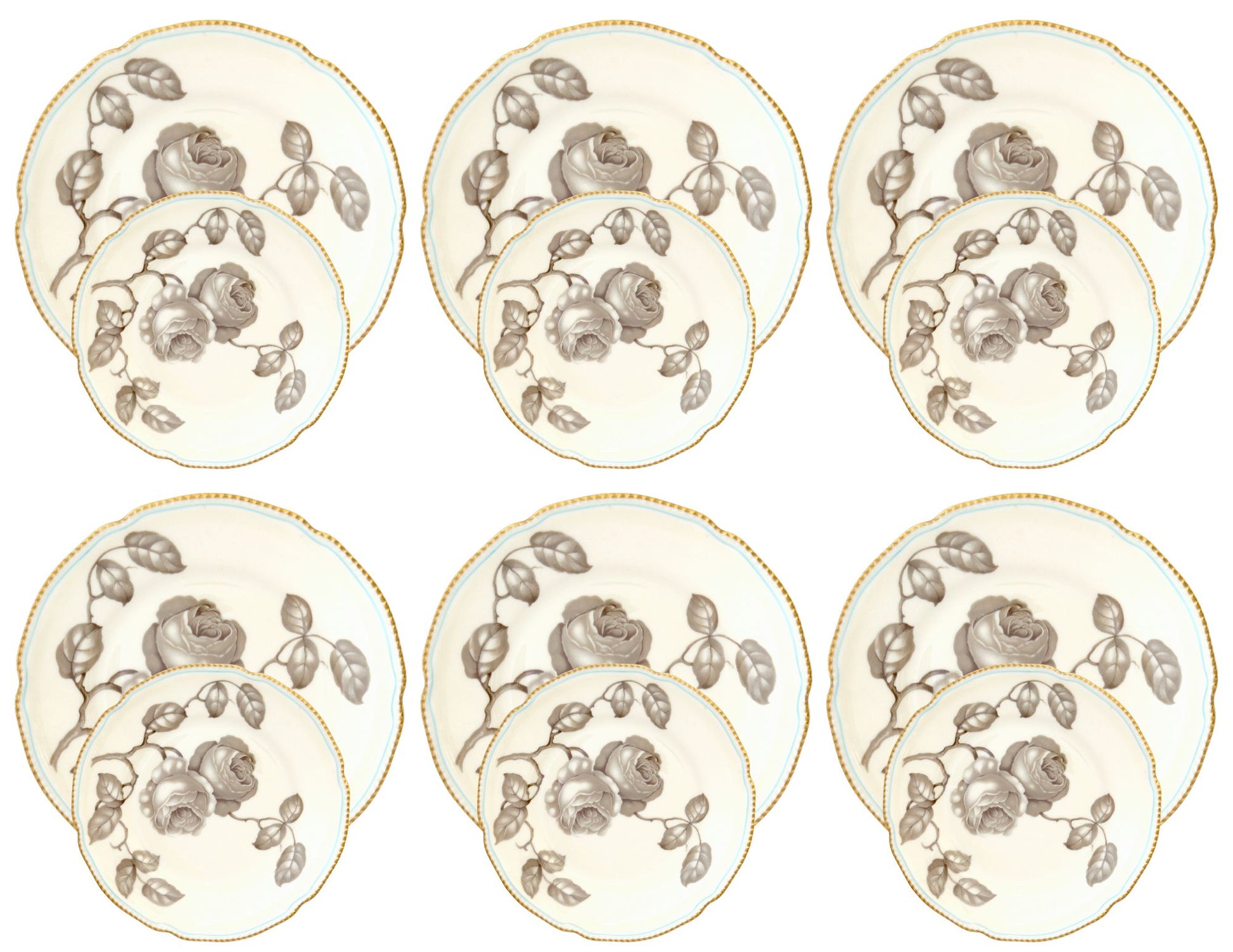 Vintage Rose Pattern Dessert Plates, 12 pcs