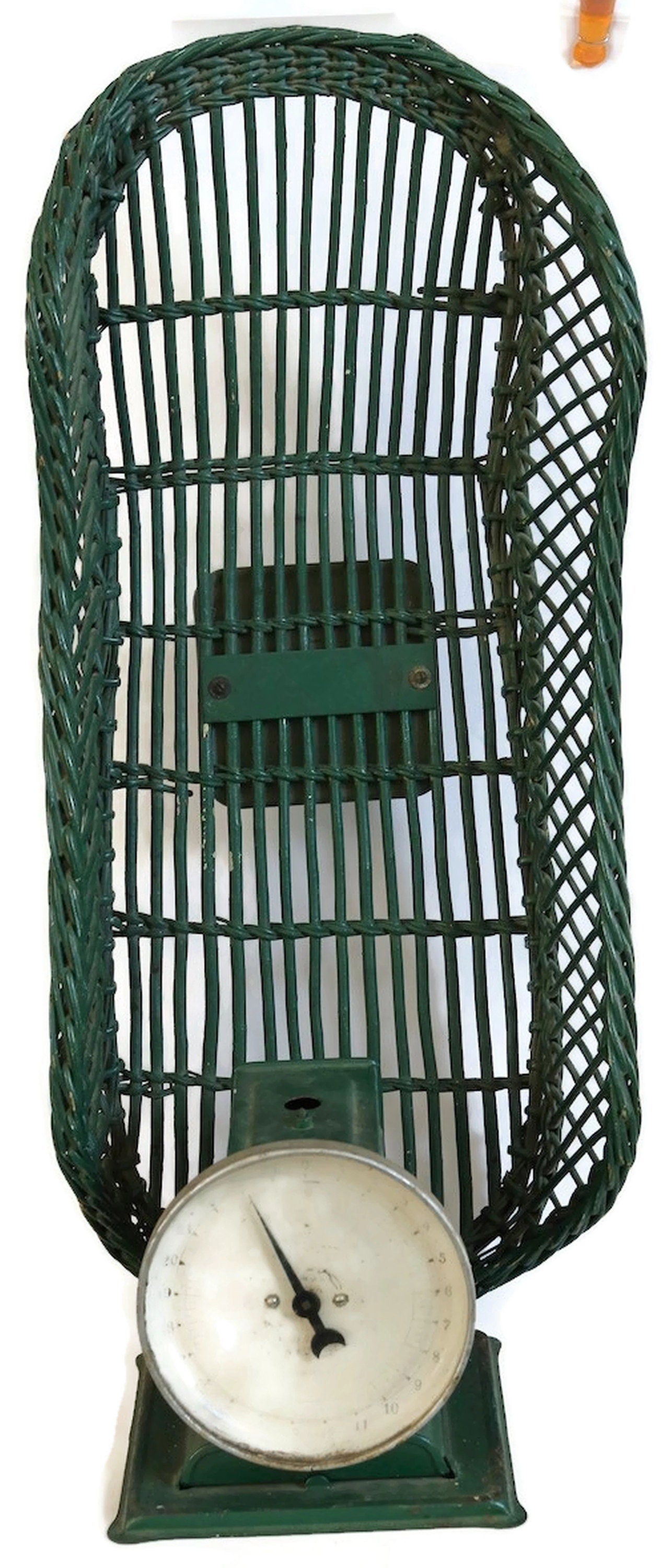 Vintage pediatrician's baby scale. Original wicker weighing basket. All parts are working, however uncertain of accuracy.