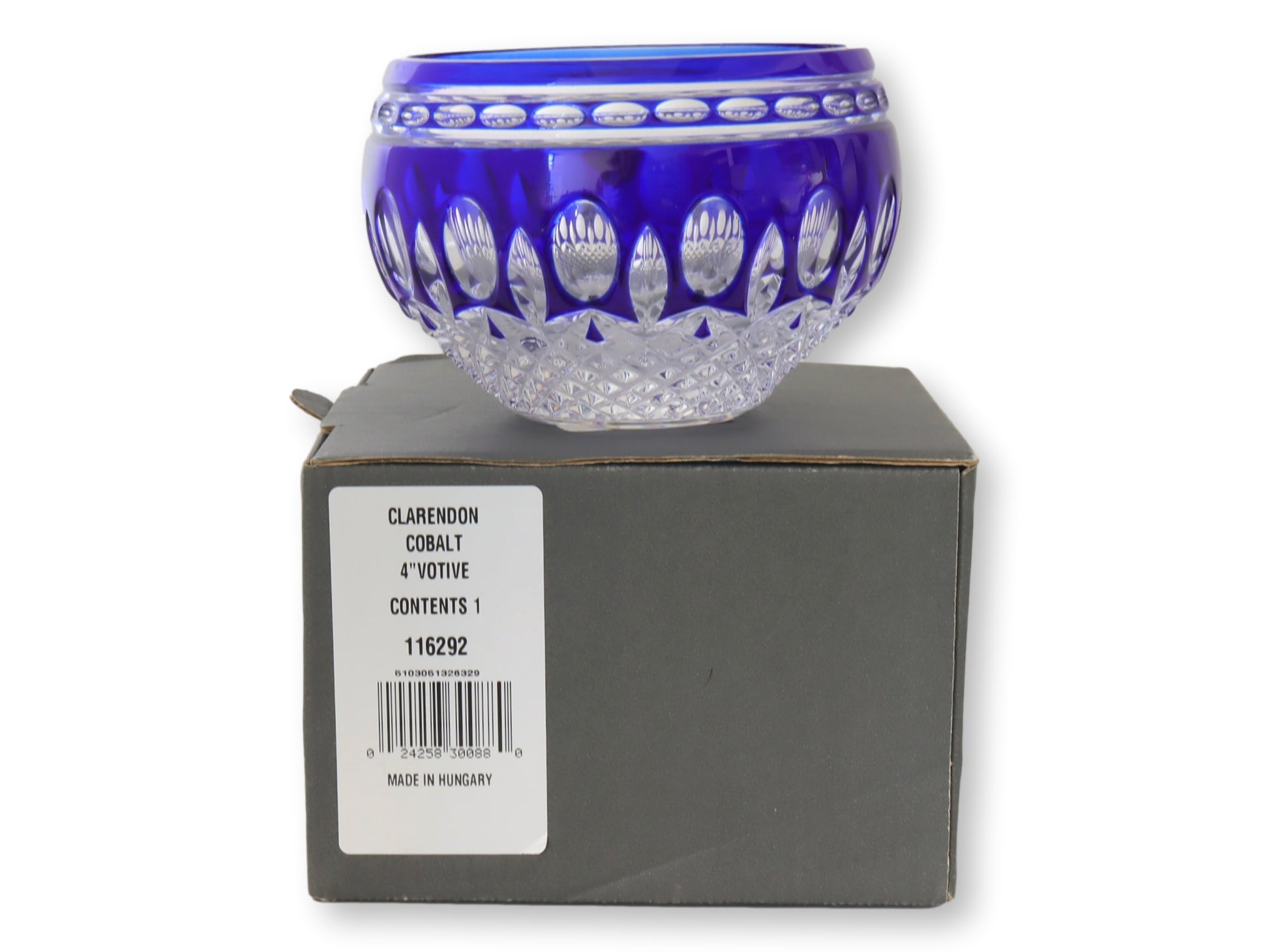 Illuminate your space with the exquisite charm of this vintage Waterford Clarendon cobalt votive candleholder. Crafted from the finest lead crystal, this piece showcases a stunning cobalt blue overlay cut to clear design. The intricate pattern reflects light beautifully, creating a mesmerizing glow when lit. A perfect blend of elegance and functionality, it adds a touch of luxury to any decor. Ideal for collectors or as a thoughtful gift, this votive candleholder embodies Waterford's legacy of exceptional craftsmanship.